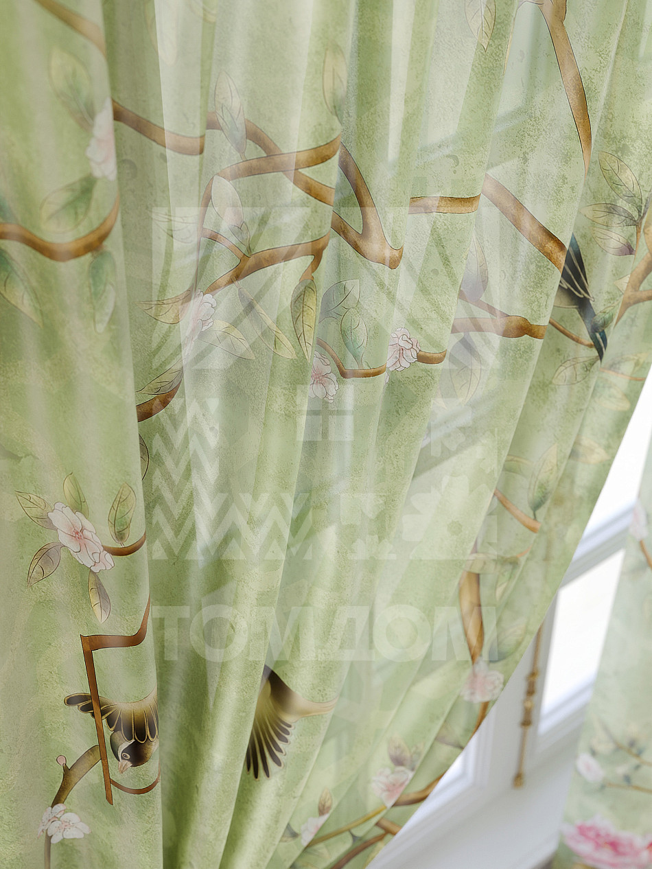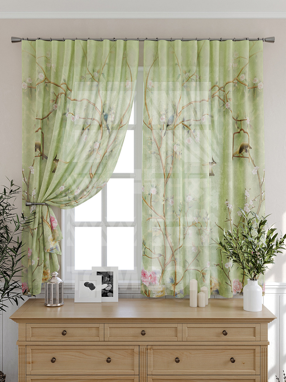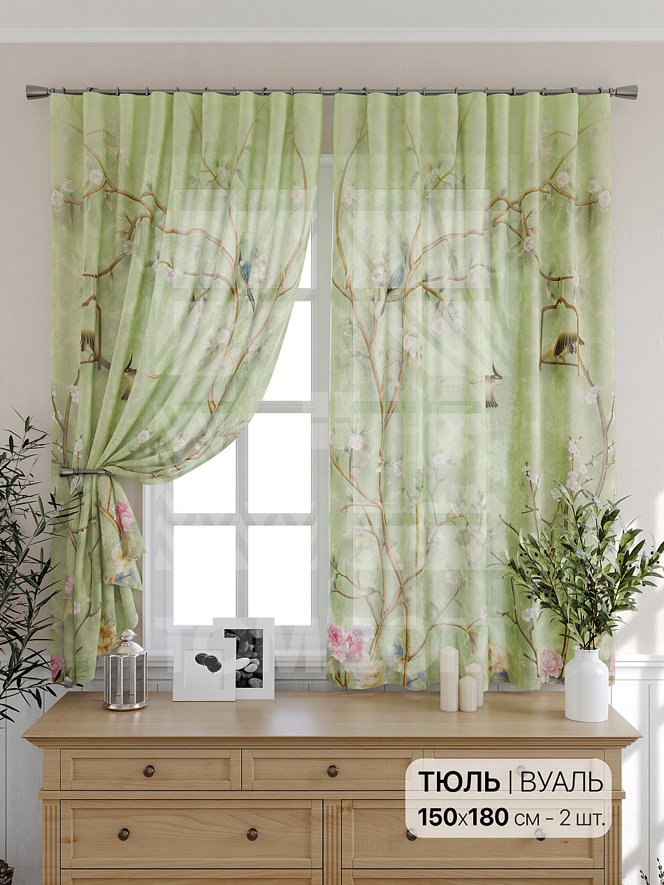 Тюль 2 шт. Подхват - доп.услуга. Легкая основа (вуаль) оформлена принтом. Вуаль с матовой полупрозрачной текстурой. Отличается особым шиком, идеально подходит для создания воздушных штор. Придает ощущение свежести, хорошо пропускает воздух. Ткань неприхотлива в уходе, хорошо стирается без разрушения волокон с течением времени за счет высокого кручения нитей.
