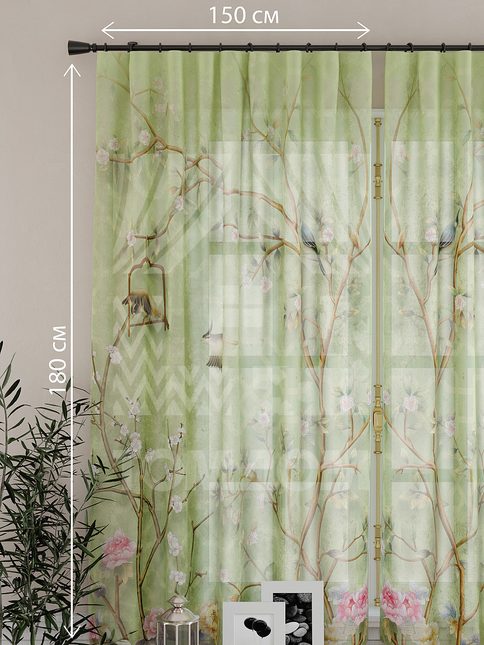 Ширина одного тюля без сборки 150 см, высота 180 см.