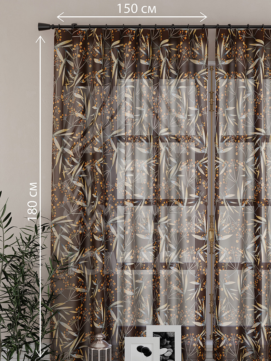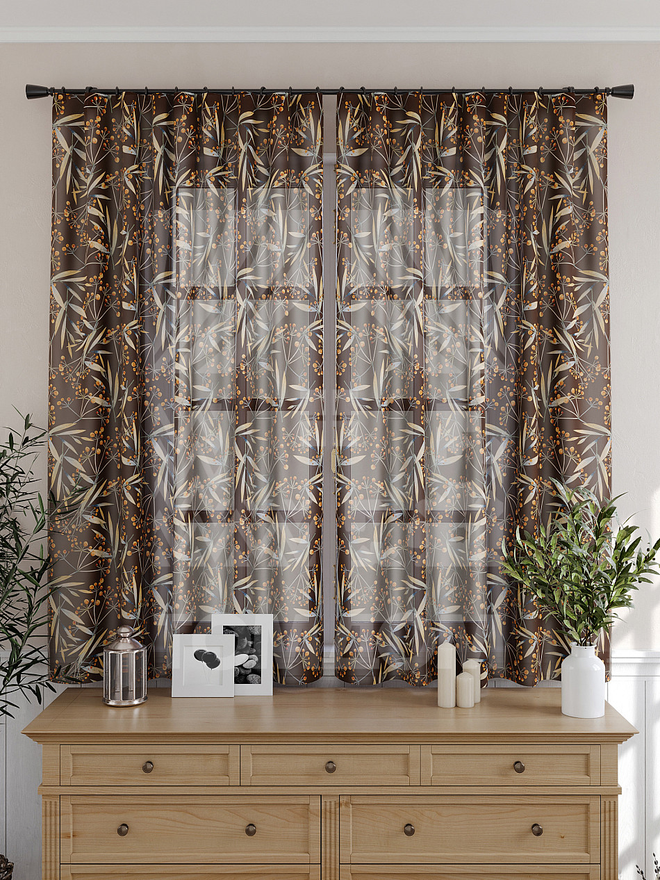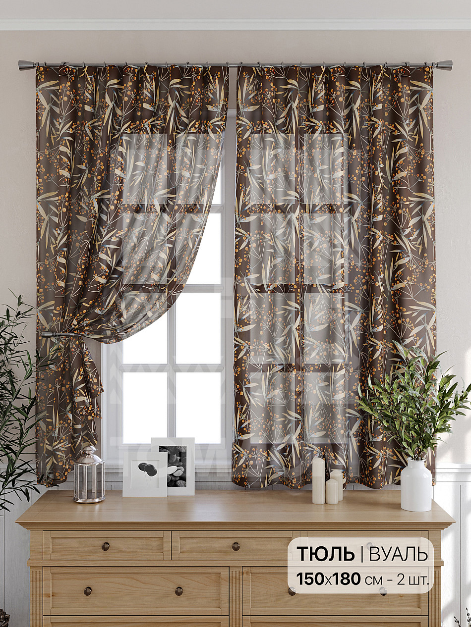 Тюль 2 шт. Подхват - доп.услуга. Легкая основа (вуаль) оформлена принтом. Вуаль с матовой полупрозрачной текстурой. Отличается особым шиком, идеально подходит для создания воздушных штор. Придает ощущение свежести, хорошо пропускает воздух. Ткань неприхотлива в уходе, хорошо стирается без разрушения волокон с течением времени за счет высокого кручения нитей.