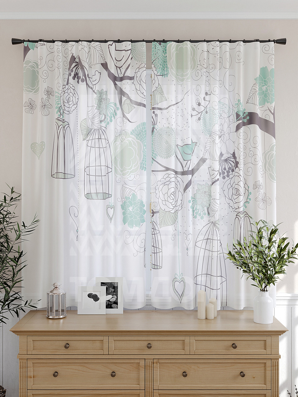 Тюль 2 шт. Подхват - доп.услуга. Легкая основа (вуаль) оформлена принтом. Вуаль с матовой полупрозрачной текстурой. Отличается особым шиком, идеально подходит для создания воздушных штор. Придает ощущение свежести, хорошо пропускает воздух. Ткань неприхотлива в уходе, хорошо стирается без разрушения волокон с течением времени за счет высокого кручения нитей.