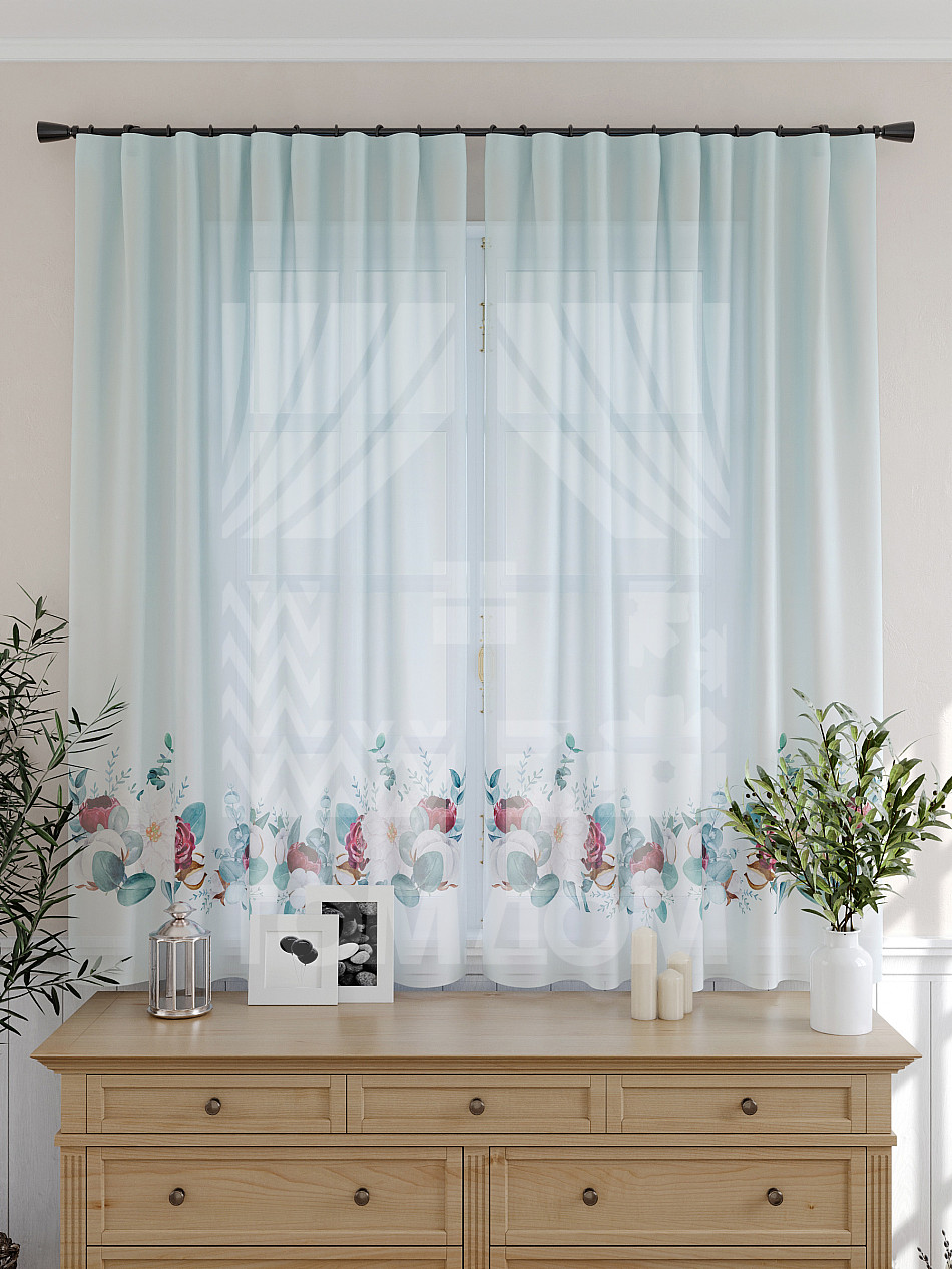 Тюль 2 шт. Подхват - доп.услуга. Легкая основа (вуаль) оформлена принтом. Вуаль с матовой полупрозрачной текстурой. Отличается особым шиком, идеально подходит для создания воздушных штор. Придает ощущение свежести, хорошо пропускает воздух. Ткань неприхотлива в уходе, хорошо стирается без разрушения волокон с течением времени за счет высокого кручения нитей.