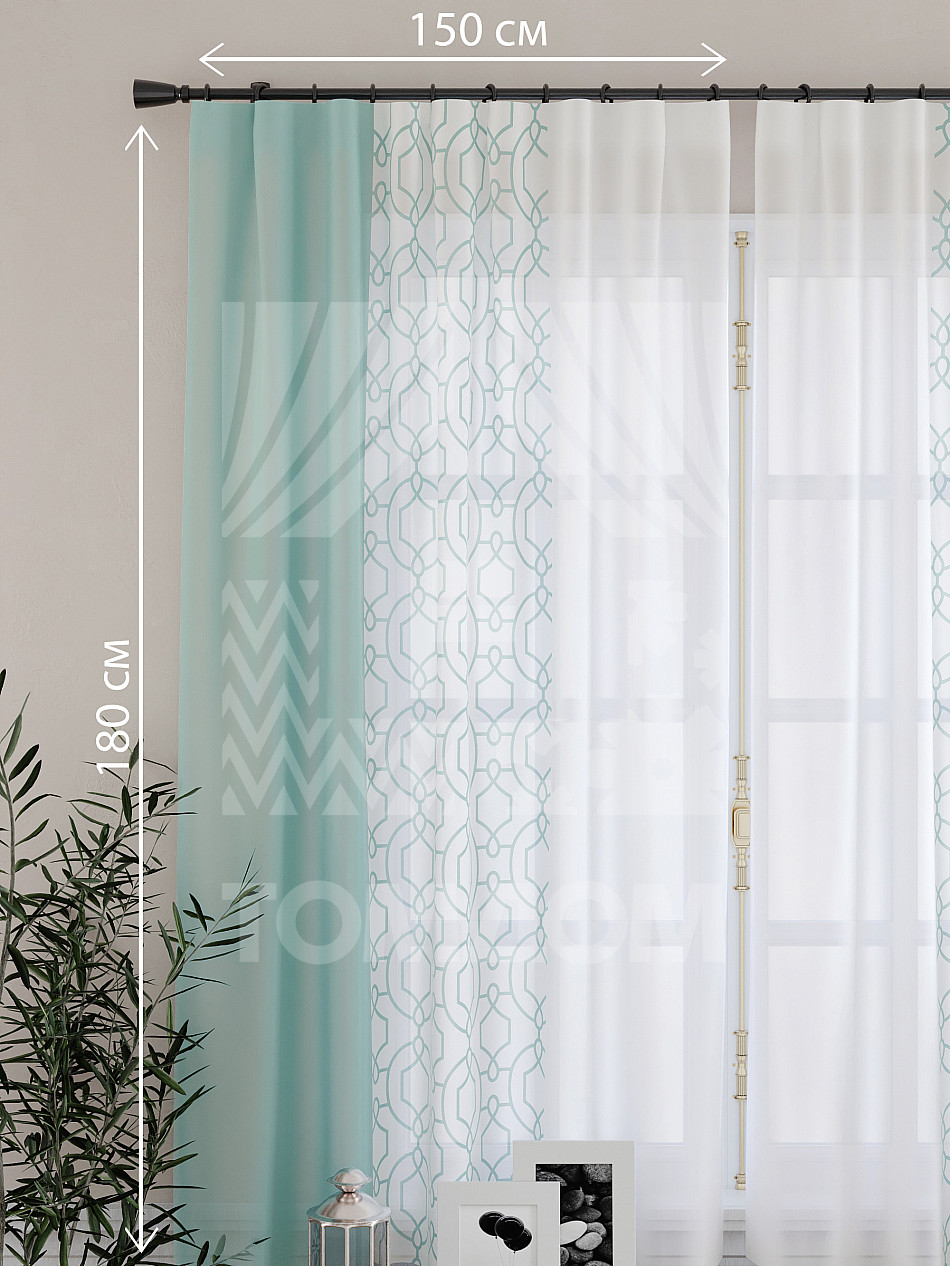 Ширина одного тюля без сборки 150 см, высота 180 см.
