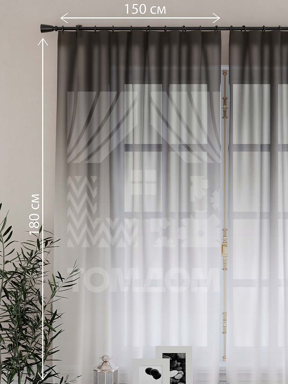 Ширина одного тюля без сборки 150 см, высота 180 см.