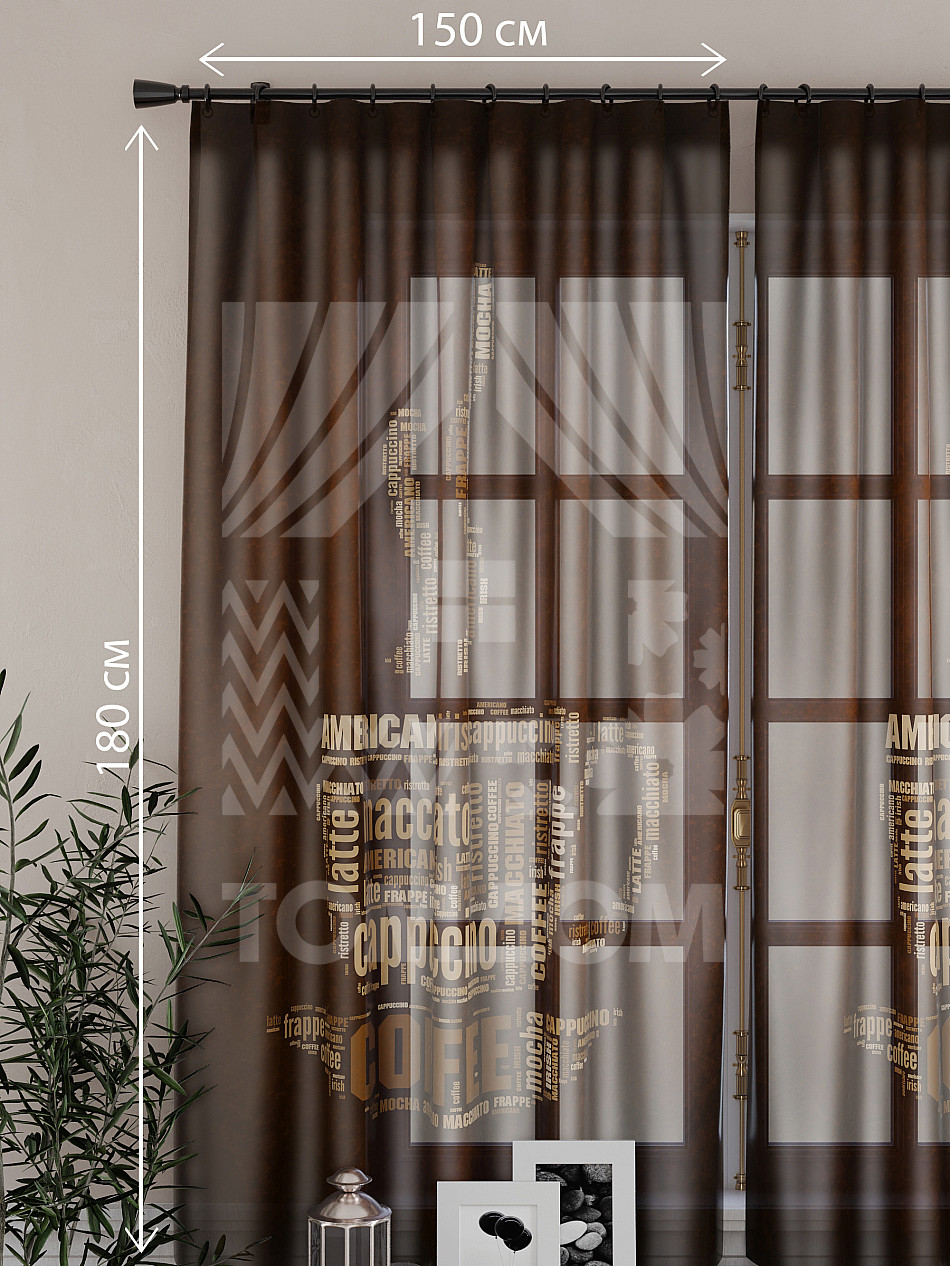 Тюль 2 шт. — 150х180см. ( Изменить высоту) Крепление: на петлях, кулиска Подробнее