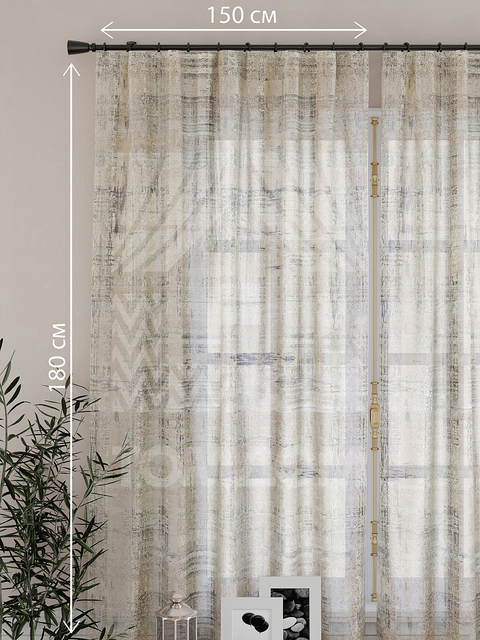 Ширина одного тюля без сборки 150 см, высота 180 см.