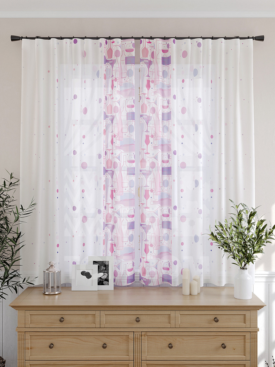 Тюль 2 шт. Подхват - доп.услуга. Легкая основа (вуаль) оформлена принтом. Вуаль с матовой полупрозрачной текстурой. Отличается особым шиком, идеально подходит для создания воздушных штор. Придает ощущение свежести, хорошо пропускает воздух. Ткань неприхотлива в уходе, хорошо стирается без разрушения волокон с течением времени за счет высокого кручения нитей.