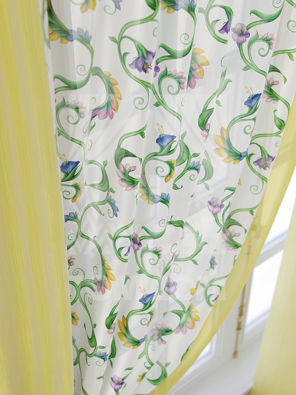 Тюль 2 шт. Подхват - доп.услуга. Легкая основа (вуаль) оформлена принтом. Вуаль с матовой полупрозрачной текстурой. Отличается особым шиком, идеально подходит для создания воздушных штор. Придает ощущение свежести, хорошо пропускает воздух. Ткань неприхотлива в уходе, хорошо стирается без разрушения волокон с течением времени за счет высокого кручения нитей.