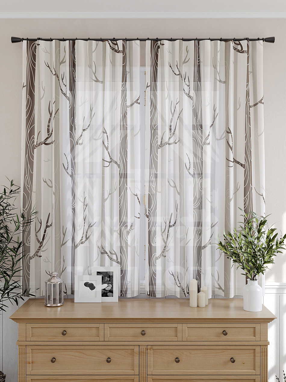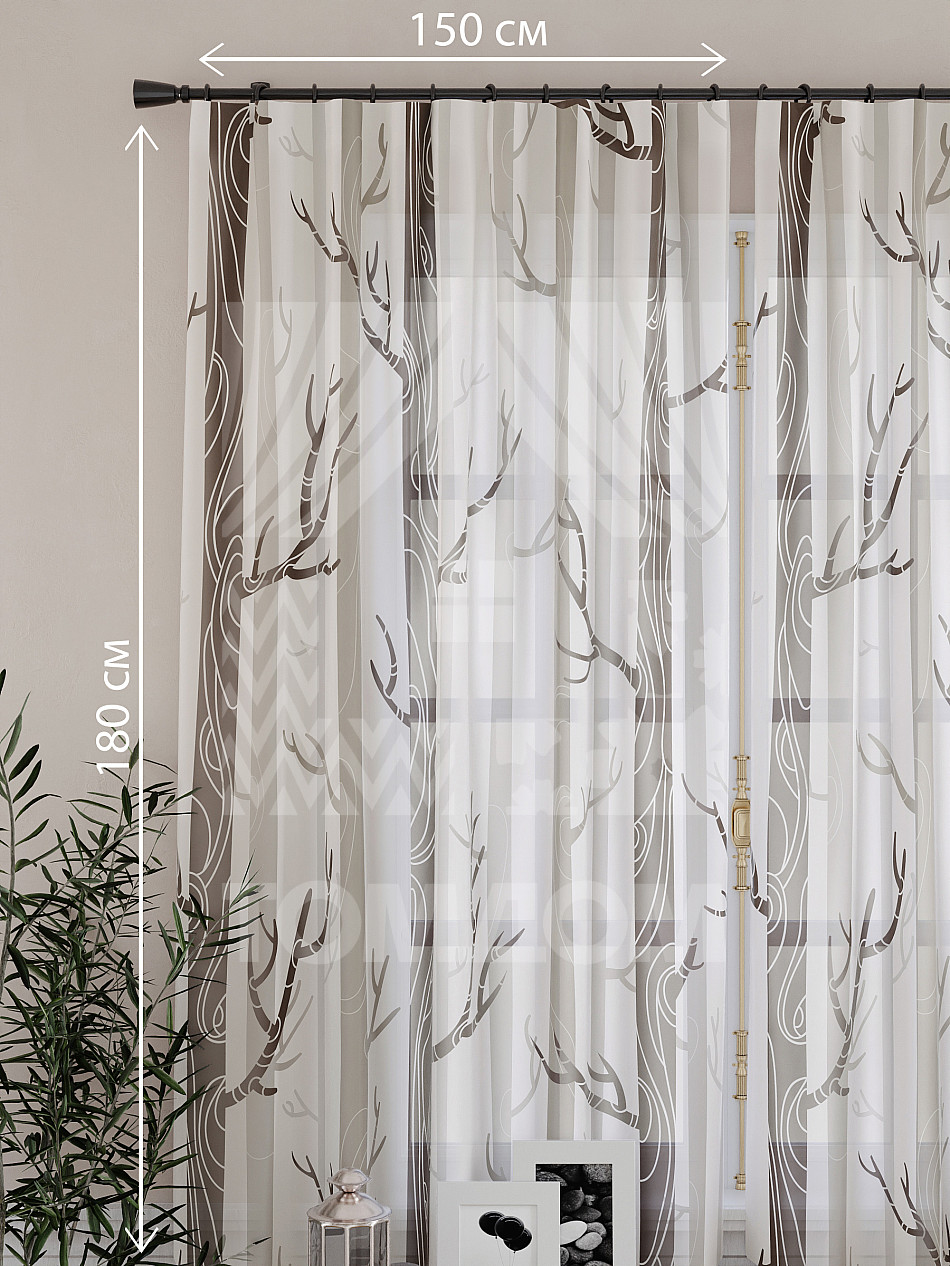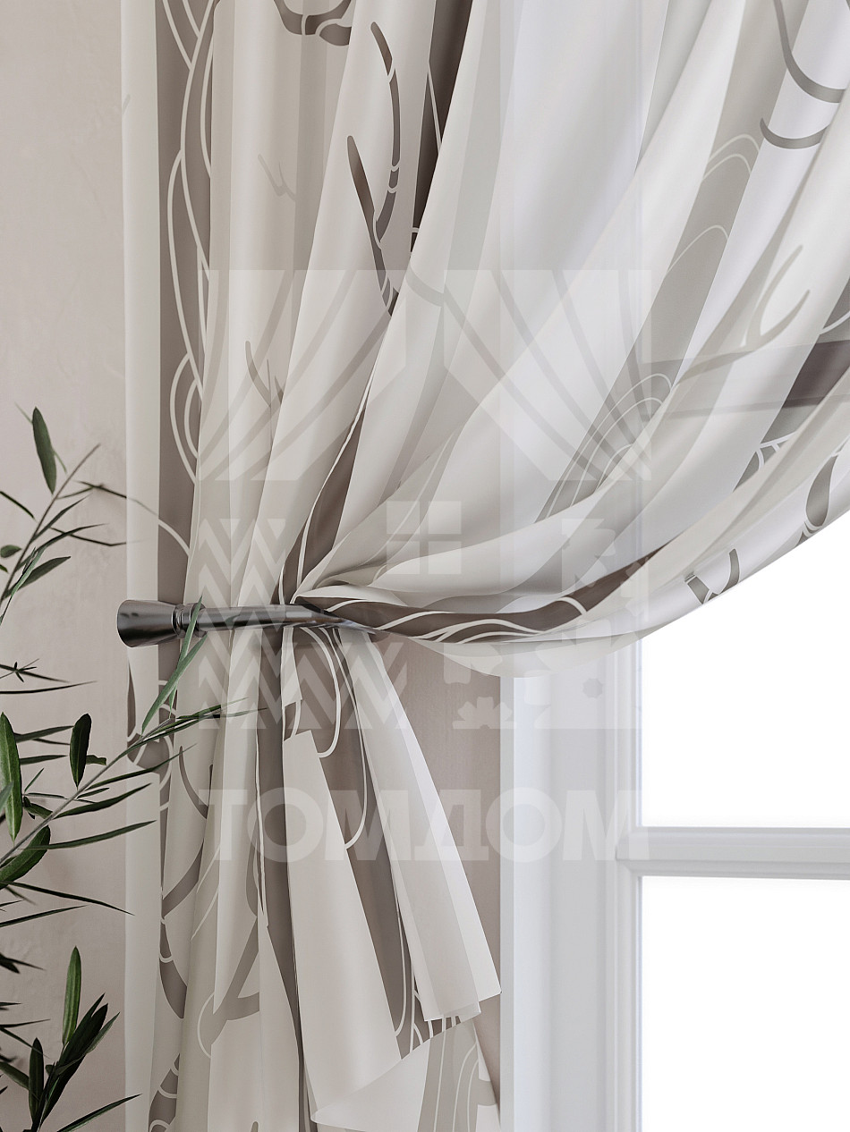 Тюль 2 шт. Подхват - доп.услуга. Легкая основа (вуаль) оформлена принтом. Вуаль с матовой полупрозрачной текстурой. Отличается особым шиком, идеально подходит для создания воздушных штор. Придает ощущение свежести, хорошо пропускает воздух. Ткань неприхотлива в уходе, хорошо стирается без разрушения волокон с течением времени за счет высокого кручения нитей.