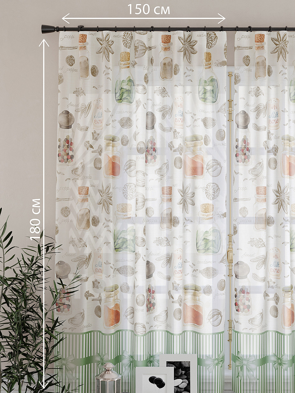 Ширина одного тюля без сборки 150 см, высота 180 см.
