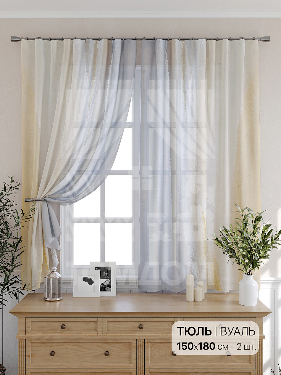 Тюль 2 шт. — 150х180 см. — 150x180 см. Вуаль страна-производитель — Россия.