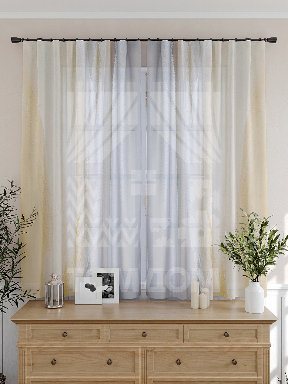 Тюль 2 шт. Подхват - доп.услуга. Легкая основа (вуаль) оформлена принтом. Вуаль с матовой полупрозрачной текстурой. Отличается особым шиком, идеально подходит для создания воздушных штор. Придает ощущение свежести, хорошо пропускает воздух. Ткань неприхотлива в уходе, хорошо стирается без разрушения волокон с течением времени за счет высокого кручения нитей.