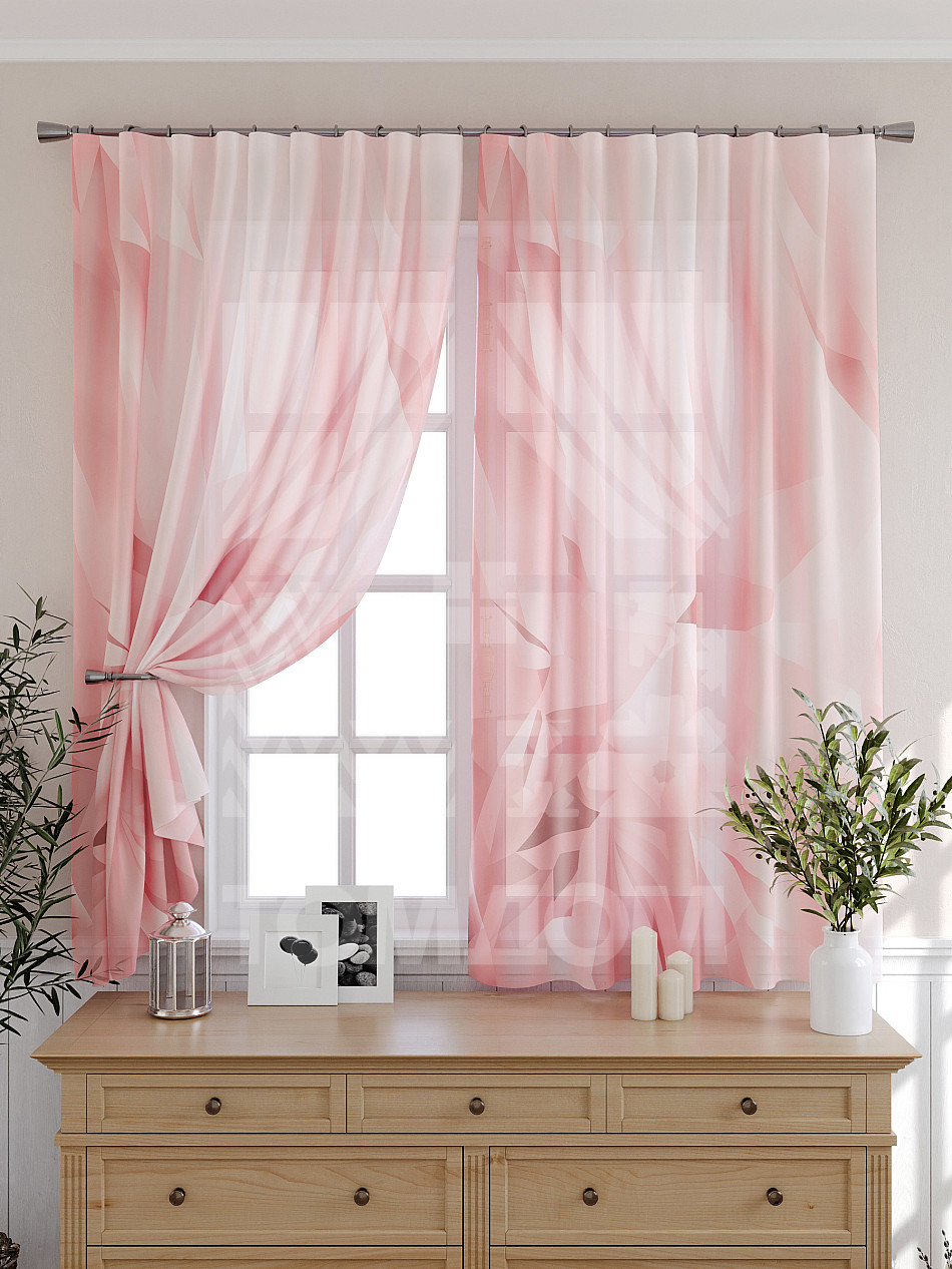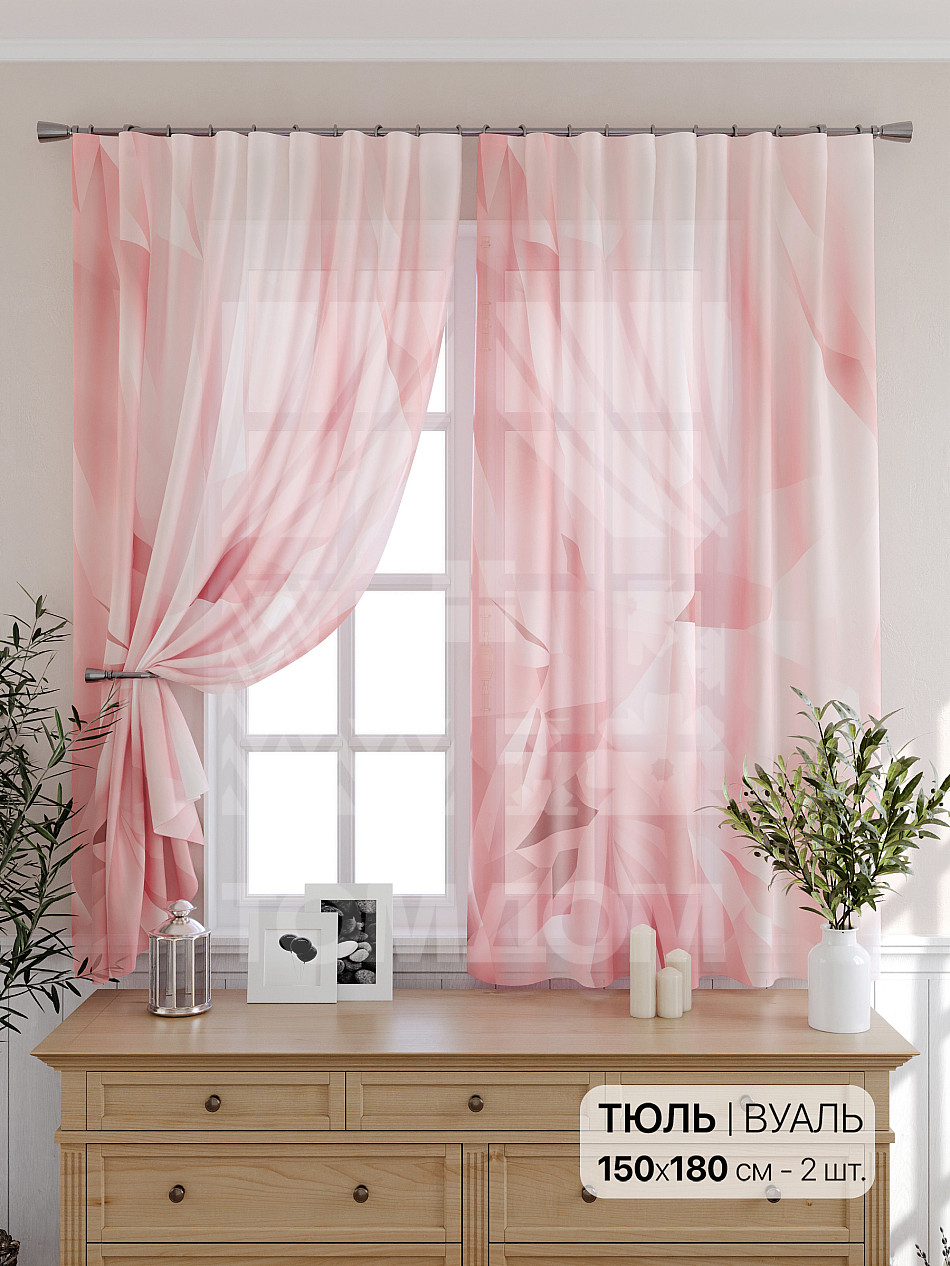 Тюль 2 шт. Подхват - доп.услуга. Легкая основа (вуаль) оформлена принтом. Вуаль с матовой полупрозрачной текстурой. Отличается особым шиком, идеально подходит для создания воздушных штор. Придает ощущение свежести, хорошо пропускает воздух. Ткань неприхотлива в уходе, хорошо стирается без разрушения волокон с течением времени за счет высокого кручения нитей.