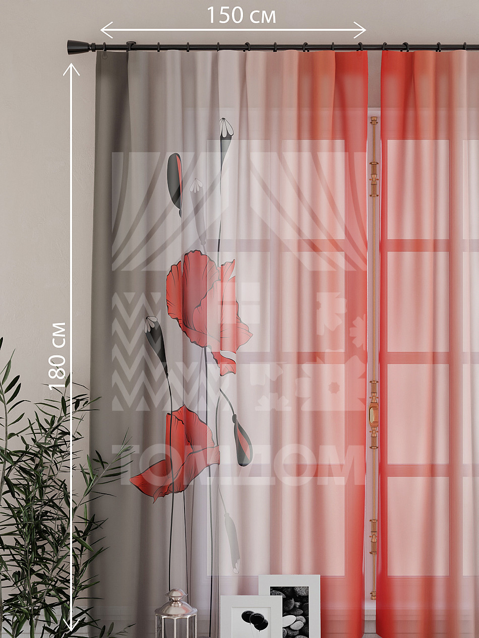 Тюль 2 шт. — 150х180см. ( Изменить высоту) Крепление: шторная лента (крючки) Подробнее