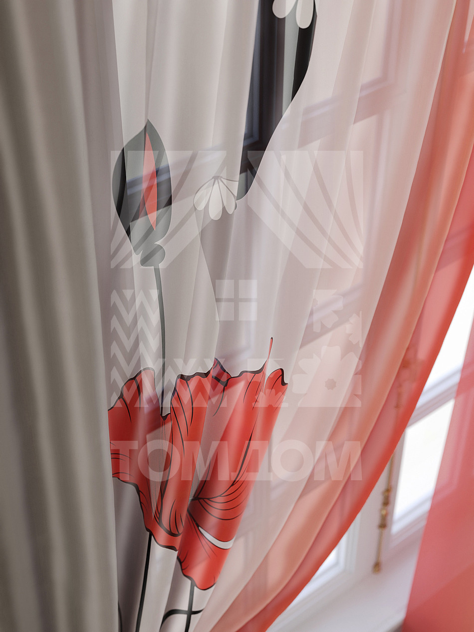 Тюль 2 шт. Подхват - доп.услуга. Легкая основа (вуаль) оформлена принтом. Вуаль с матовой полупрозрачной текстурой. Отличается особым шиком, идеально подходит для создания воздушных штор. Придает ощущение свежести, хорошо пропускает воздух. Ткань неприхотлива в уходе, хорошо стирается без разрушения волокон с течением времени за счет высокого кручения нитей.
