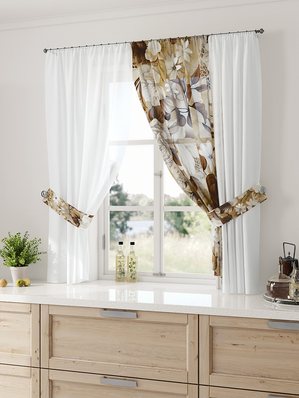 Комбинированные Современный Фото принт ЦветочныйАксессуары для оформления штор: