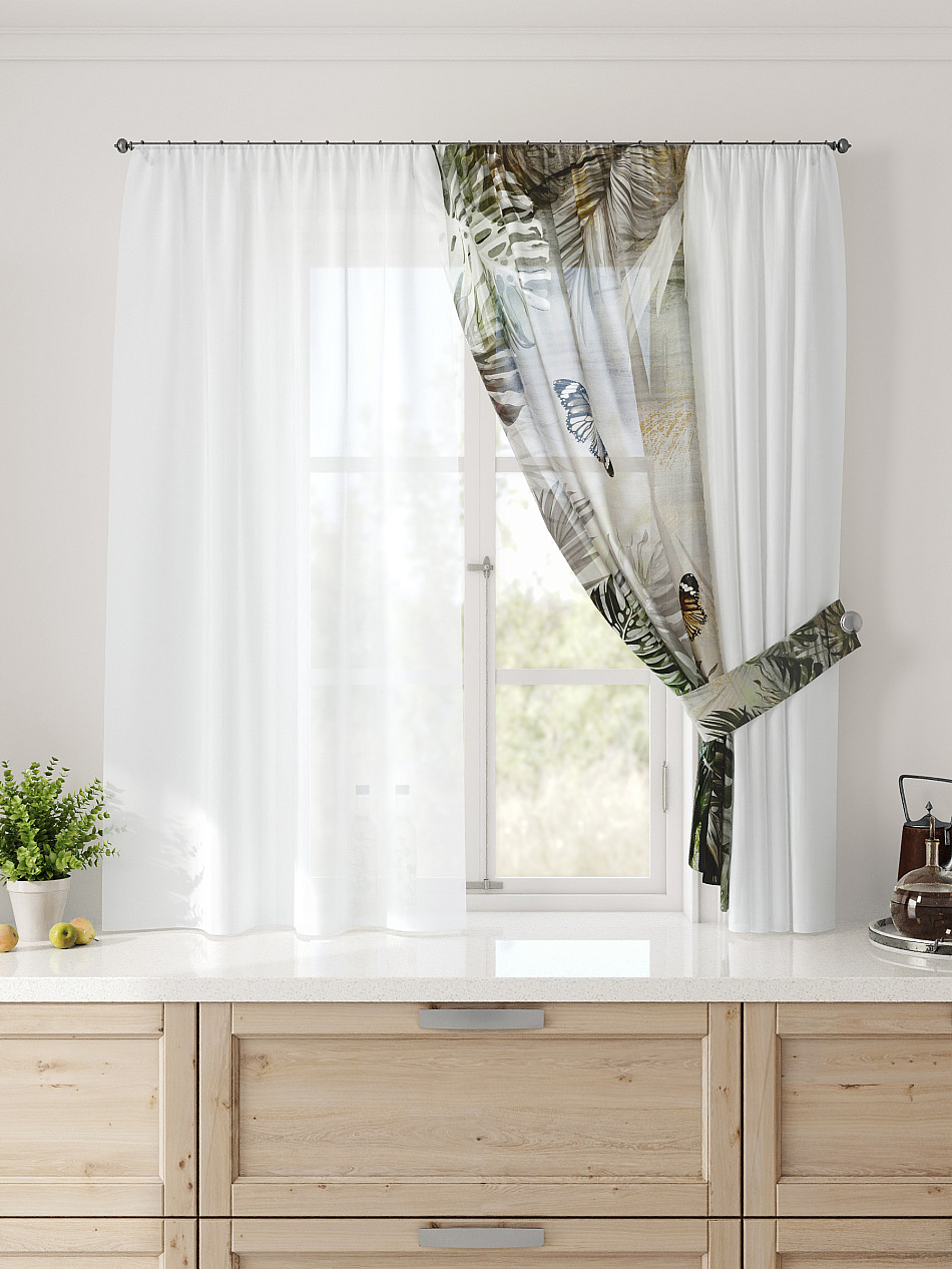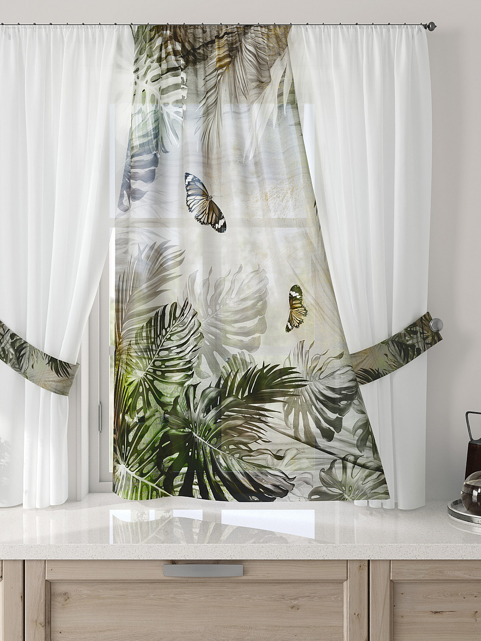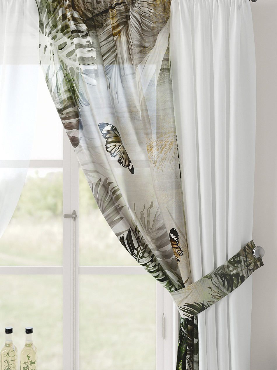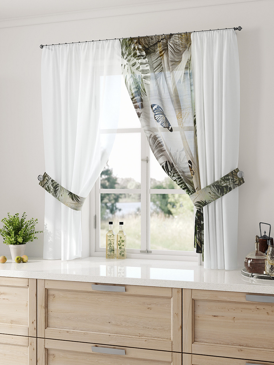 Комбинированные Растения С бабочками Тропический Фото принтАксессуары для оформления штор: