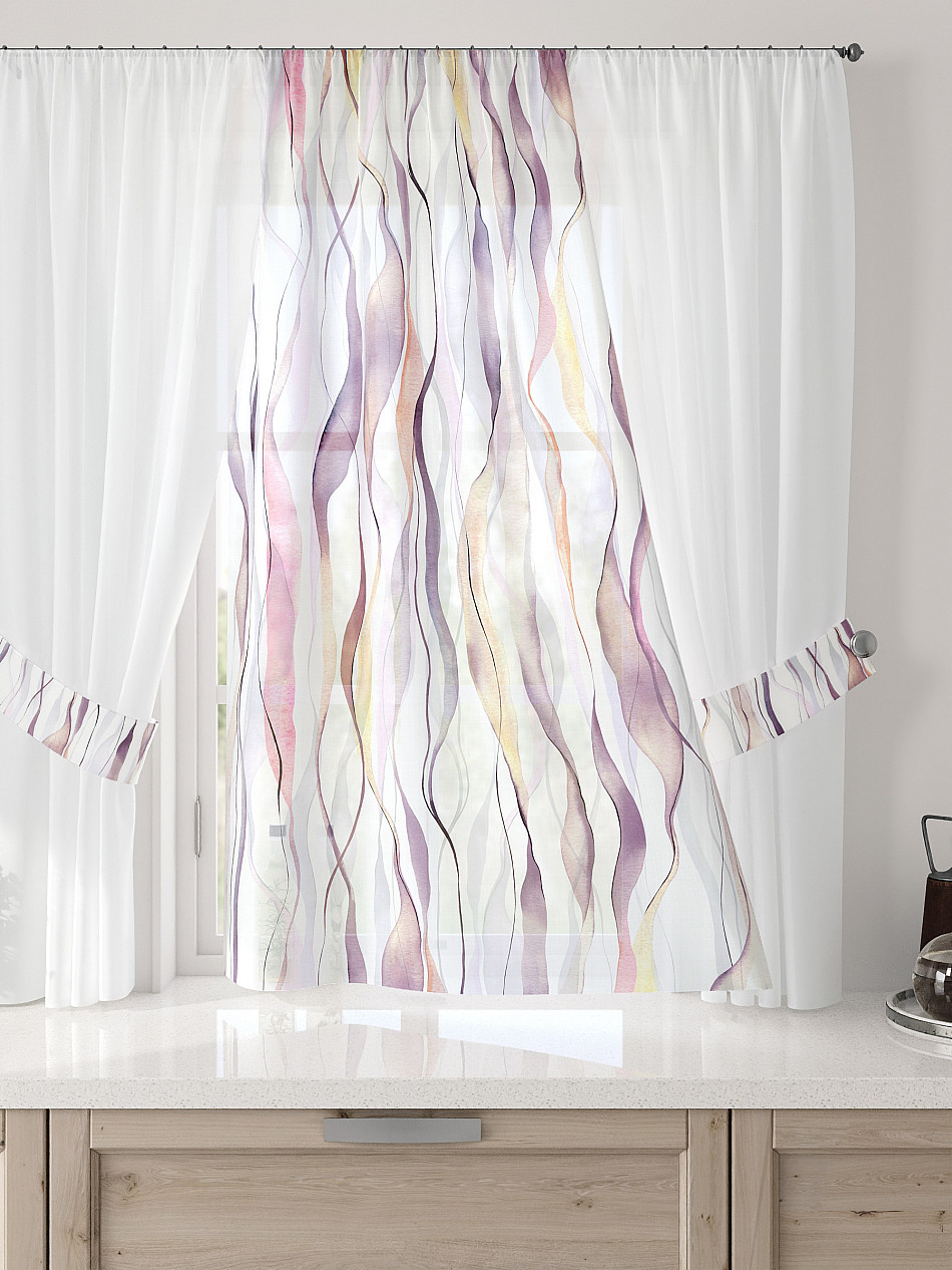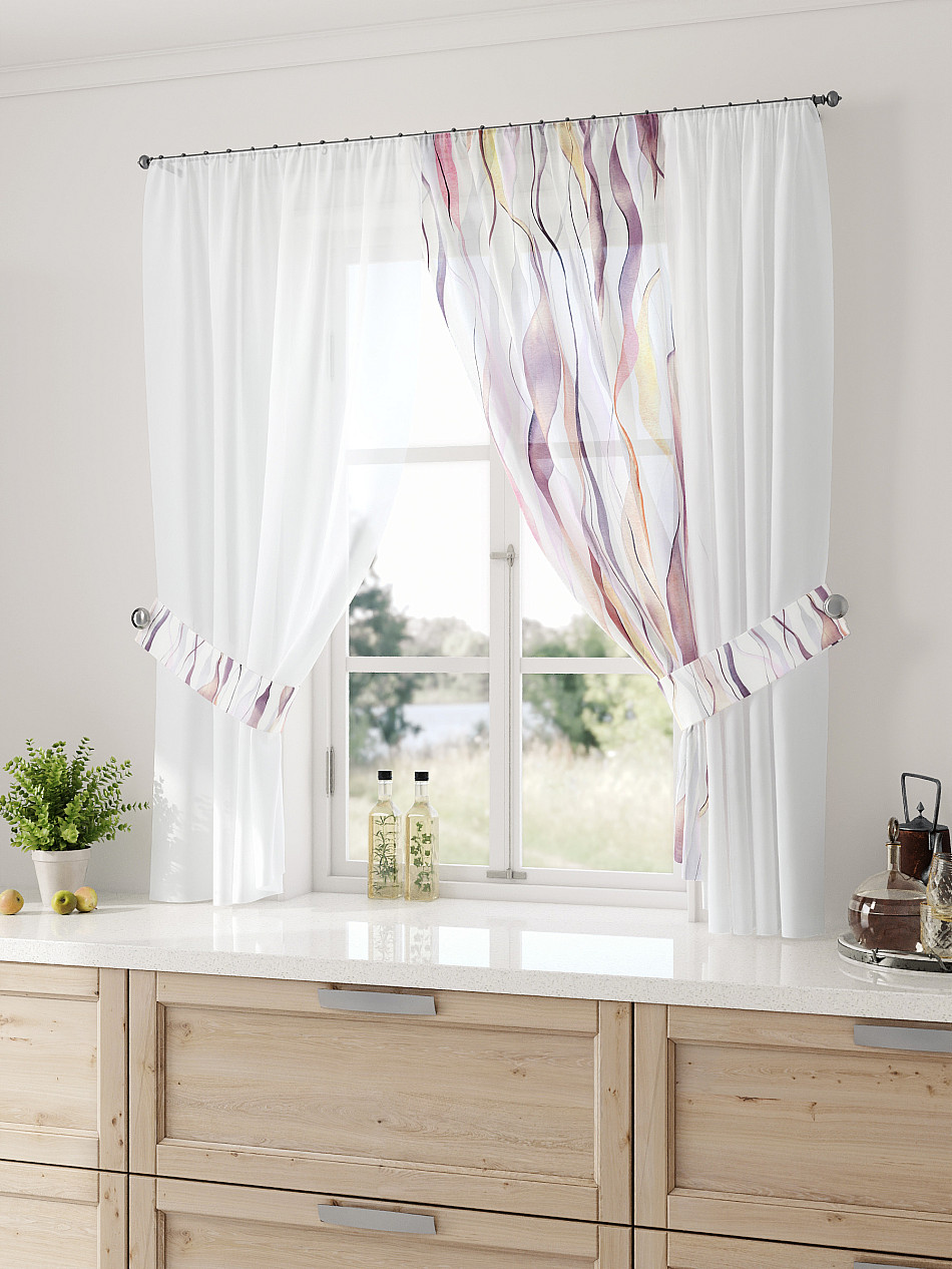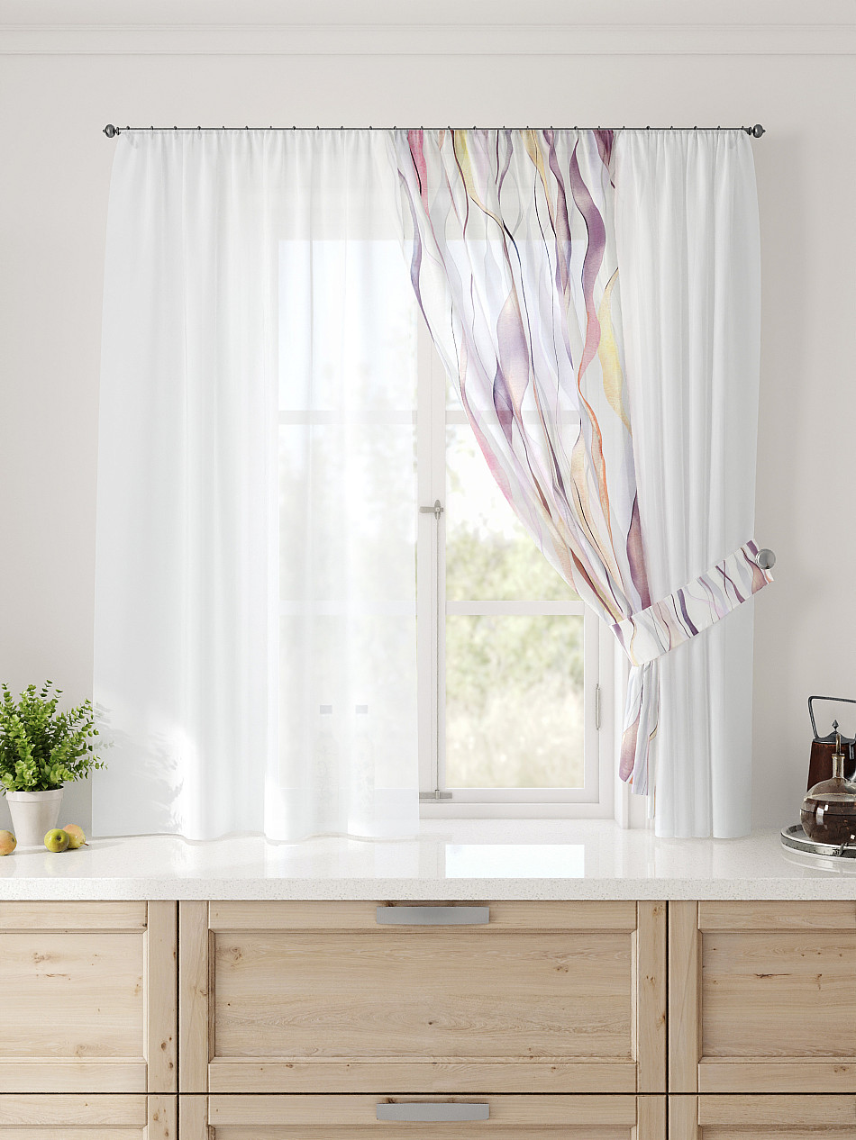 Вуаль 300х150 см — 1 шт., подхват— 2 шт. ( Уменьшить высоту ) Крепление: шторная лента (крючки), кулиска Подробнее