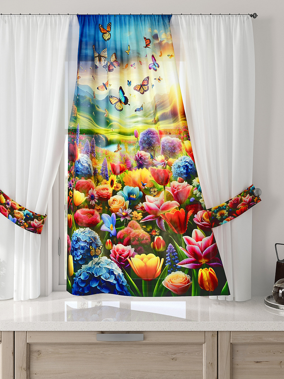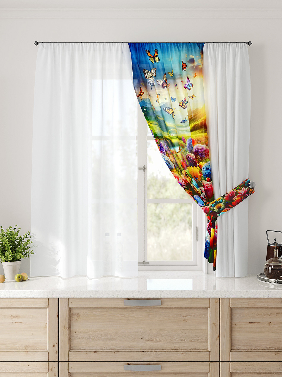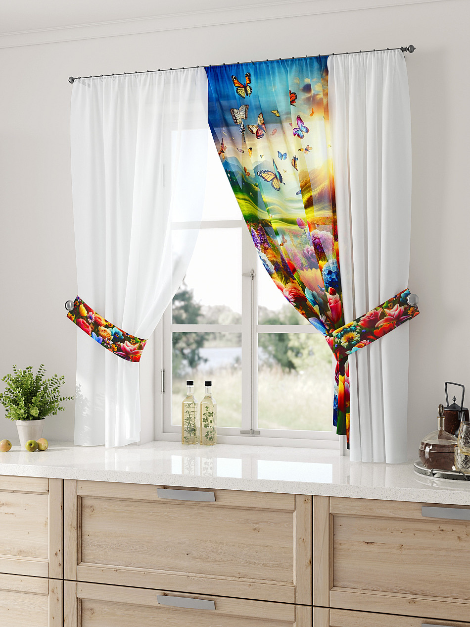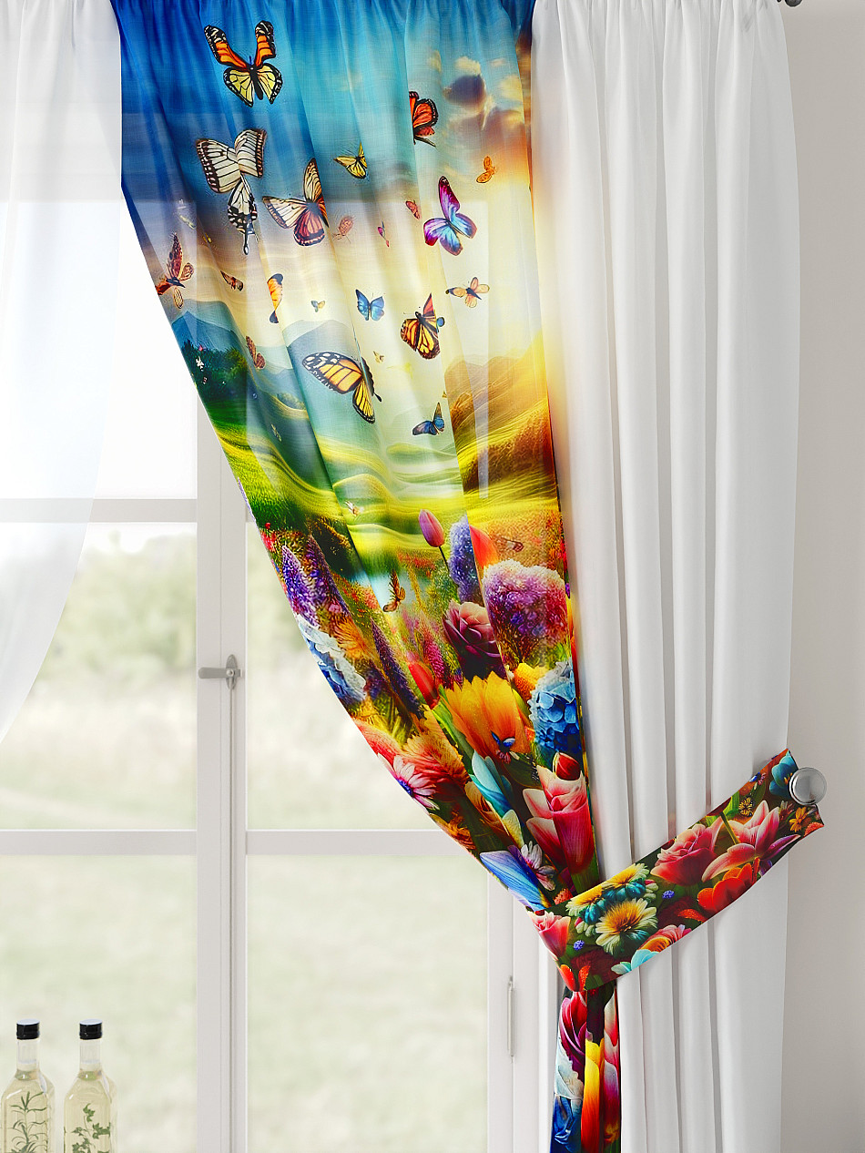 Комбинированные Природа С бабочками Фото принтАксессуары для оформления штор: