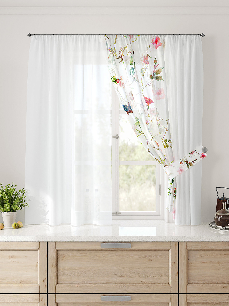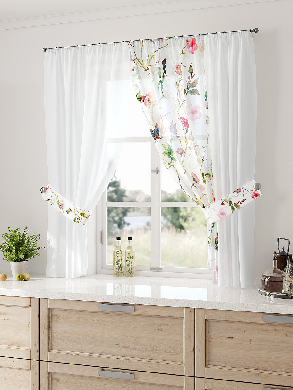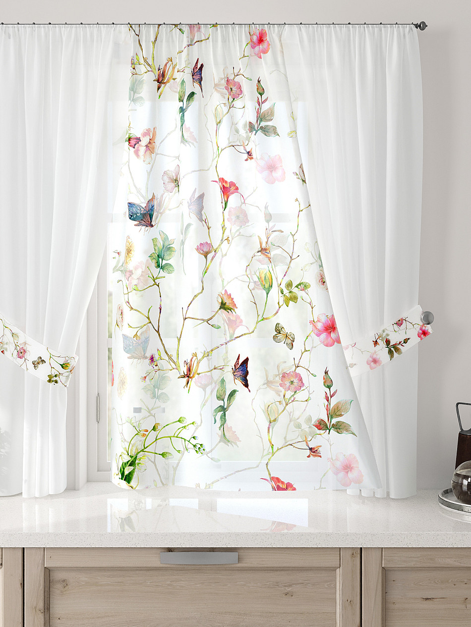 Растения С бабочками Современный Фото принтАксессуары для оформления штор: