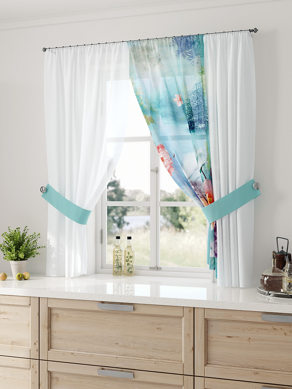 Вуаль 300х150 см — 1 шт., подхват— 2 шт. ( Уменьшить высоту ) Крепление: шторная лента (крючки), кулиска Подробнее