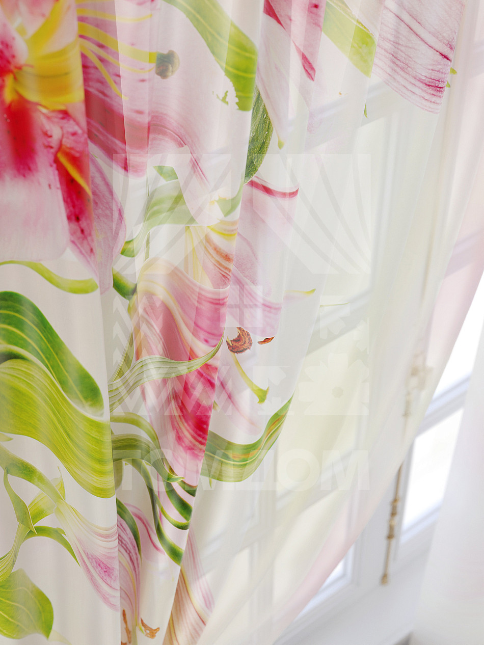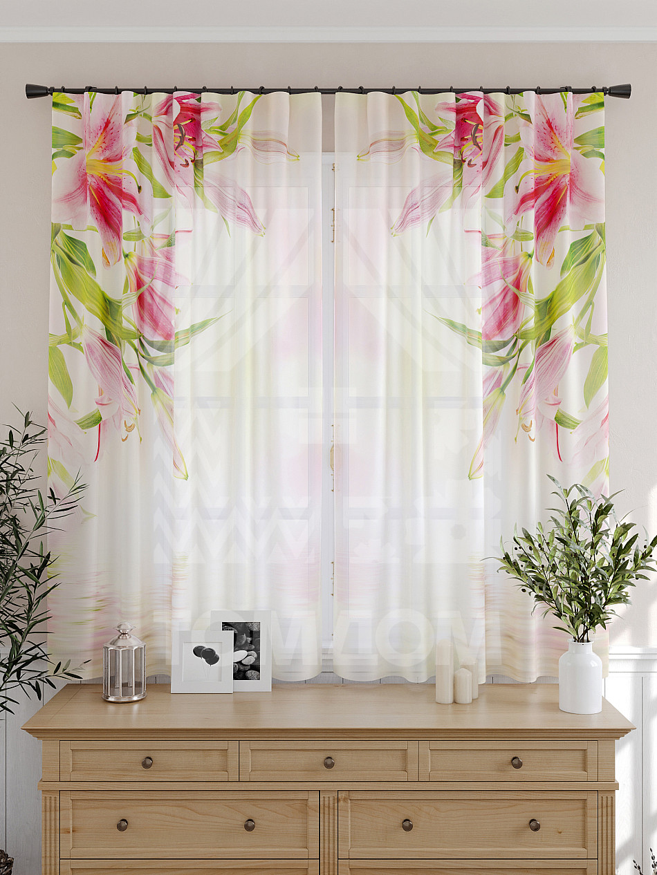 Тюль 2 шт. Подхват - доп.услуга. Легкая основа (вуаль) оформлена принтом. Вуаль с матовой полупрозрачной текстурой. Отличается особым шиком, идеально подходит для создания воздушных штор. Придает ощущение свежести, хорошо пропускает воздух. Ткань неприхотлива в уходе, хорошо стирается без разрушения волокон с течением времени за счет высокого кручения нитей.