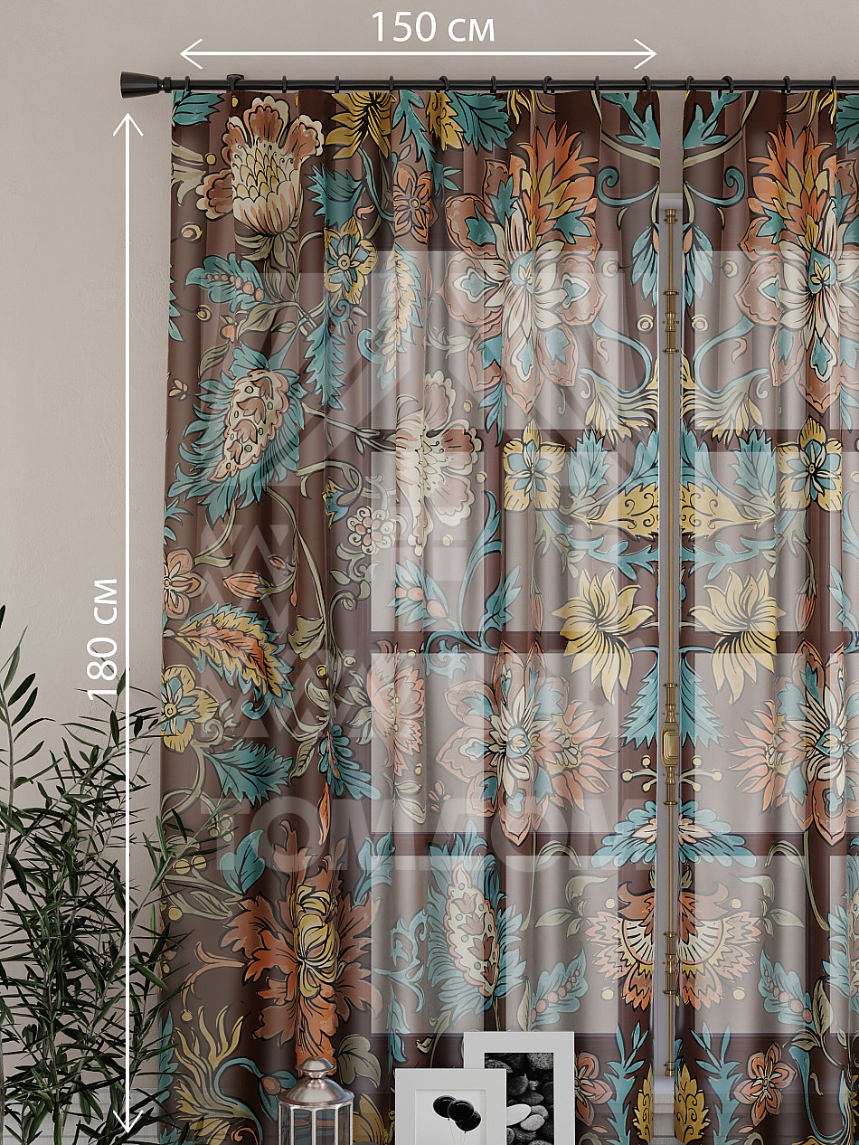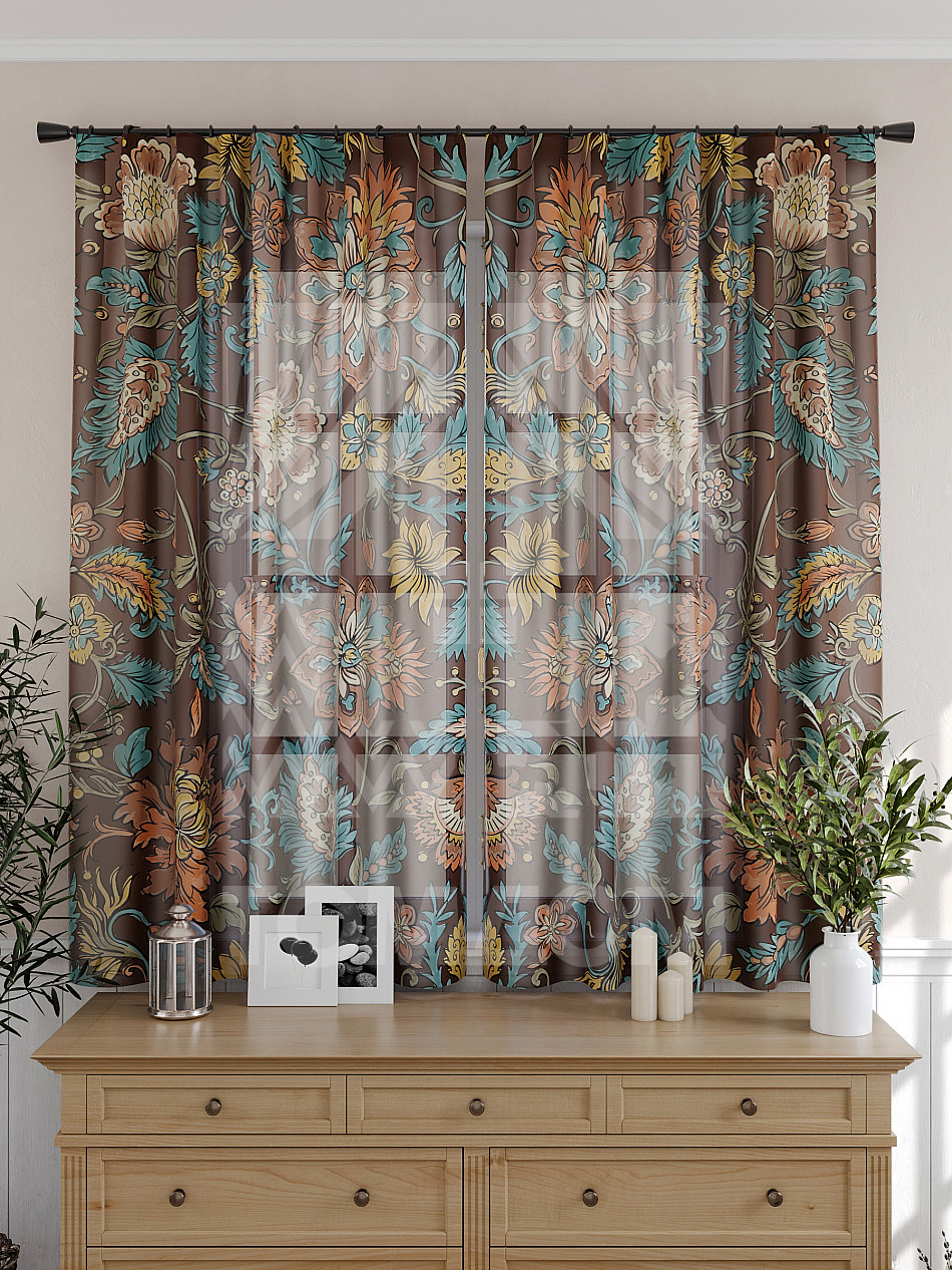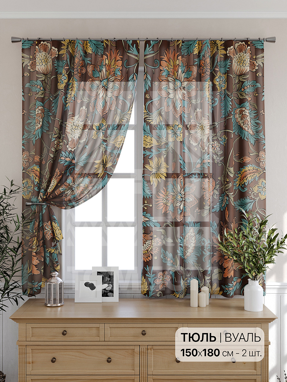 Тюль 2 шт. Подхват - доп.услуга. Легкая основа (вуаль) оформлена принтом. Вуаль с матовой полупрозрачной текстурой. Отличается особым шиком, идеально подходит для создания воздушных штор. Придает ощущение свежести, хорошо пропускает воздух. Ткань неприхотлива в уходе, хорошо стирается без разрушения волокон с течением времени за счет высокого кручения нитей.
