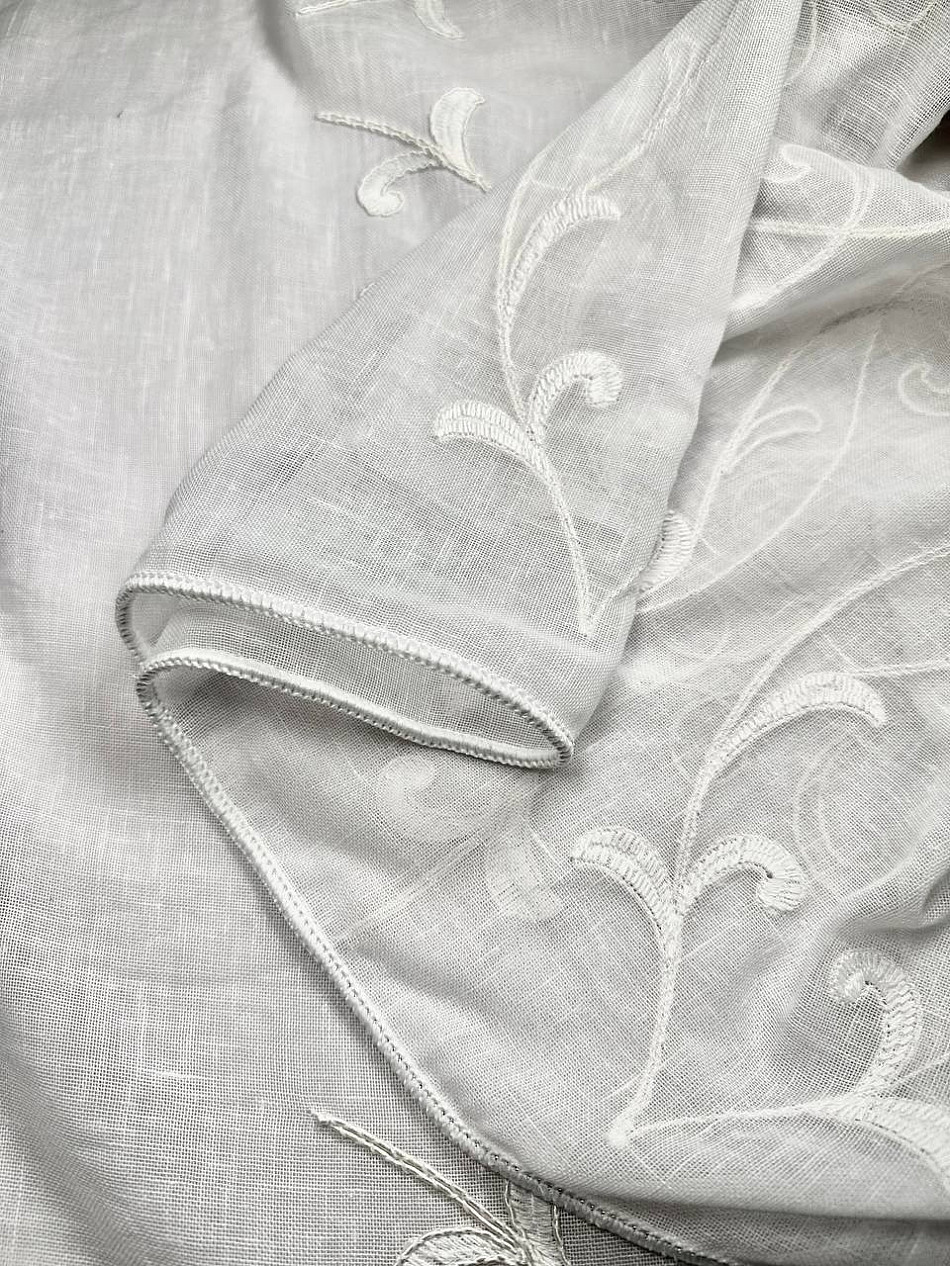 ВыбратьТюль 1 шт. Легкий, матовый (Лён) с вышивкой завораживает своей фактурой. Тюль создается путем полотняного переплетения из кручёной пряжи. Отличается особым шиком, идеально подходит для создания воздушных штор. Придает ощущение свежести, хорошо пропускает воздух. Ткань неприхотлива в уходе, хорошо стирается без разрушения волокон с течением времени за счет высокого кручения нитей.