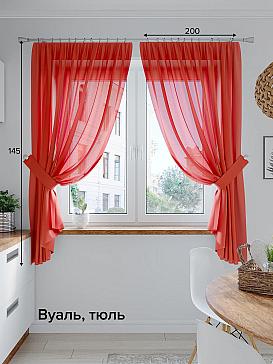 ВыбратьТюлевый комплект из красной вуали с легкой, элегантной драпировкой. Вуаль с матовой полупрозрачной текстурой. Отличается особым шиком, идеально подходит для создания воздушных штор. Придает ощущение свежести, хорошо пропускает воздух. Ткань неприхотлива в уходе, хорошо стирается без разрушения волокон с течением времени за счет высокого кручения нитей.