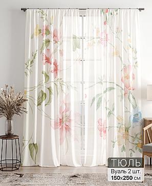 Тюль 2 шт. Легкая основа (вуаль) оформлена фотопечатью. Вуаль с матовой полупрозрачной текстурой. Отличается особым шиком, идеально подходит для создания воздушных штор. Придает ощущение свежести, хорошо пропускает воздух. Ткань неприхотлива в уходе, хорошо стирается без разрушения волокон с течением времени за счет высокого кручения нитей.