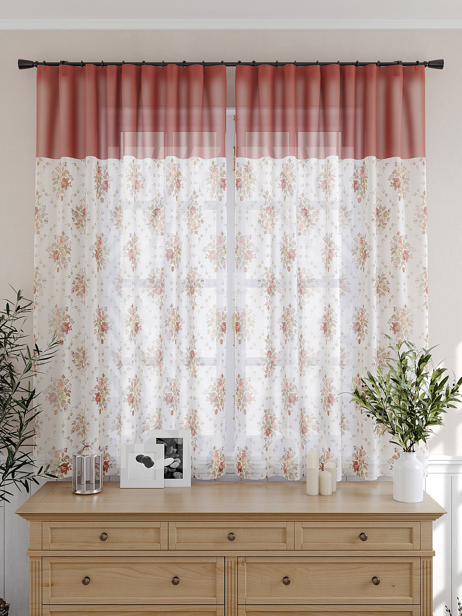 Тюль 2 шт. Подхват - доп.услуга. Легкая основа (вуаль) оформлена принтом. Вуаль с матовой полупрозрачной текстурой. Отличается особым шиком, идеально подходит для создания воздушных штор. Придает ощущение свежести, хорошо пропускает воздух. Ткань неприхотлива в уходе, хорошо стирается без разрушения волокон с течением времени за счет высокого кручения нитей.