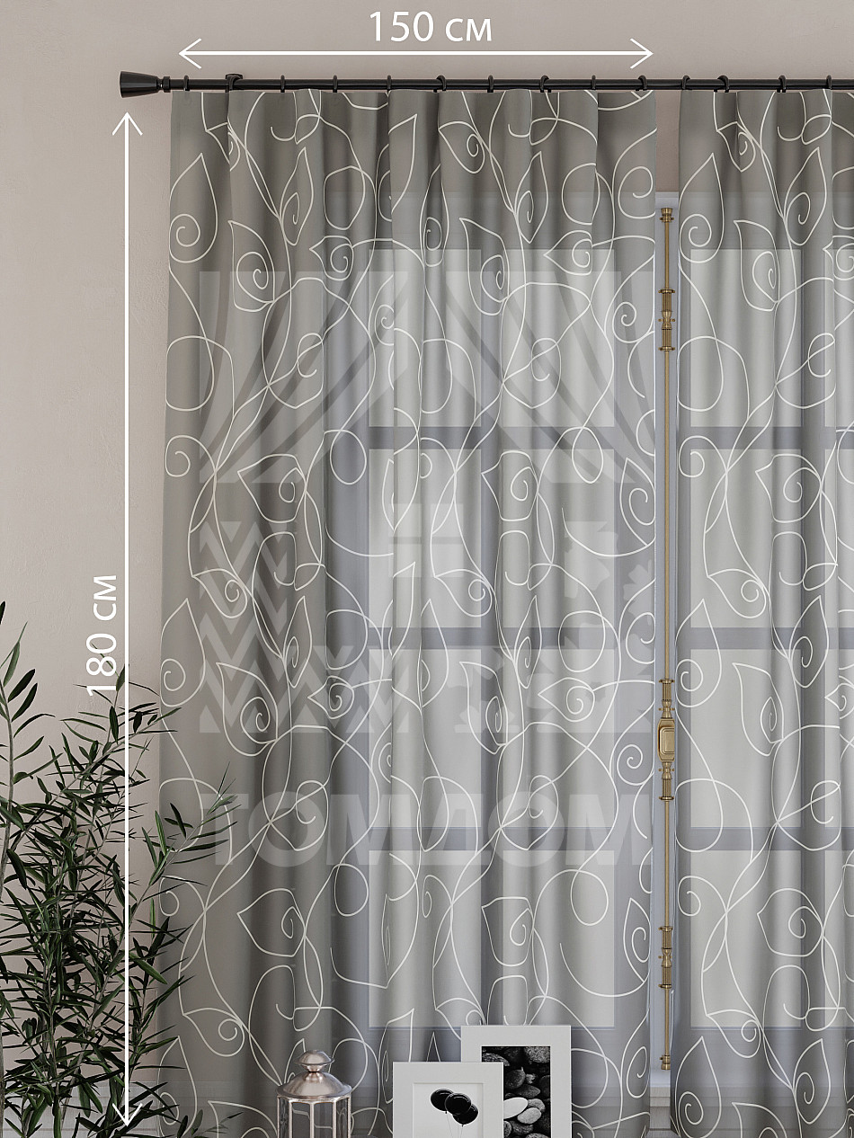 Тюль 2 шт. — 150х180см. ( Изменить высоту) Крепление: шторная лента (крючки) Подробнее