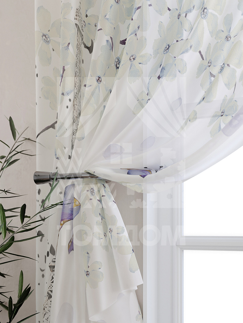 Тюль 2 шт. Подхват - доп.услуга. Легкая основа (вуаль) оформлена принтом. Вуаль с матовой полупрозрачной текстурой. Отличается особым шиком, идеально подходит для создания воздушных штор. Придает ощущение свежести, хорошо пропускает воздух. Ткань неприхотлива в уходе, хорошо стирается без разрушения волокон с течением времени за счет высокого кручения нитей.