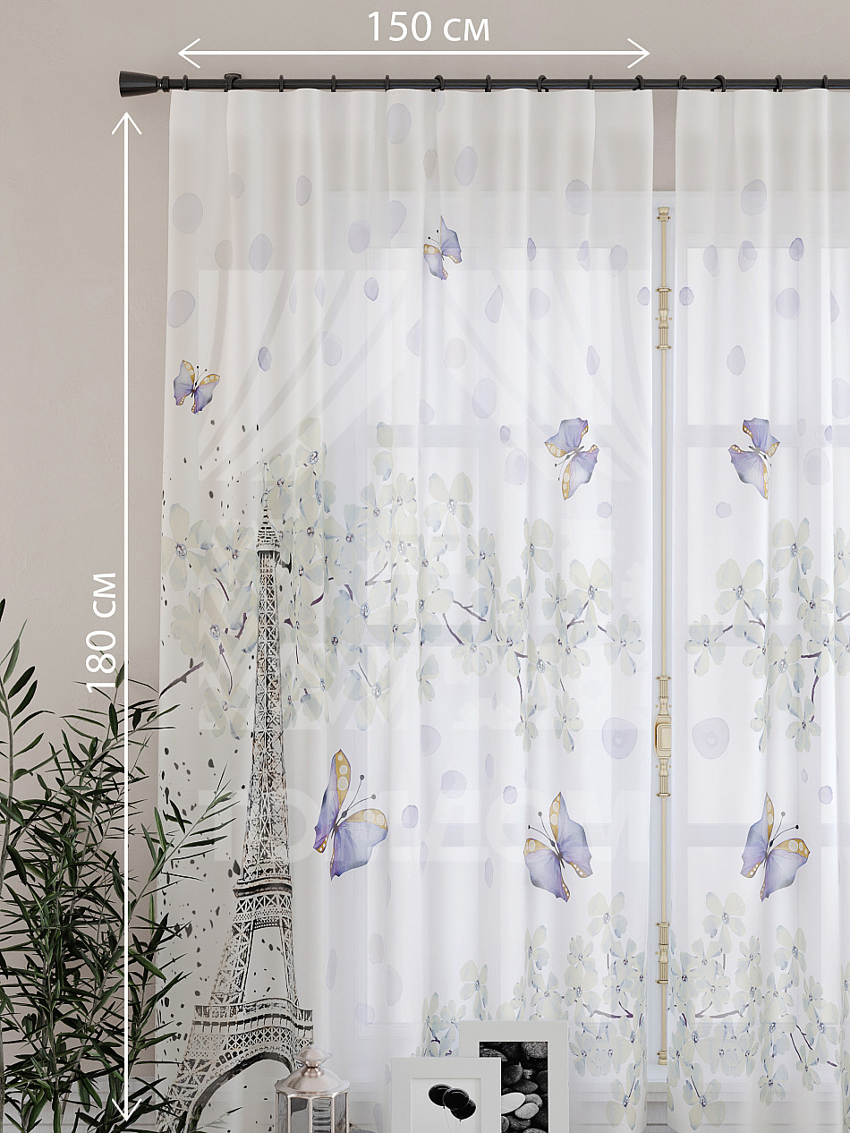 Ширина одного тюля без сборки 150 см, высота 180 см.