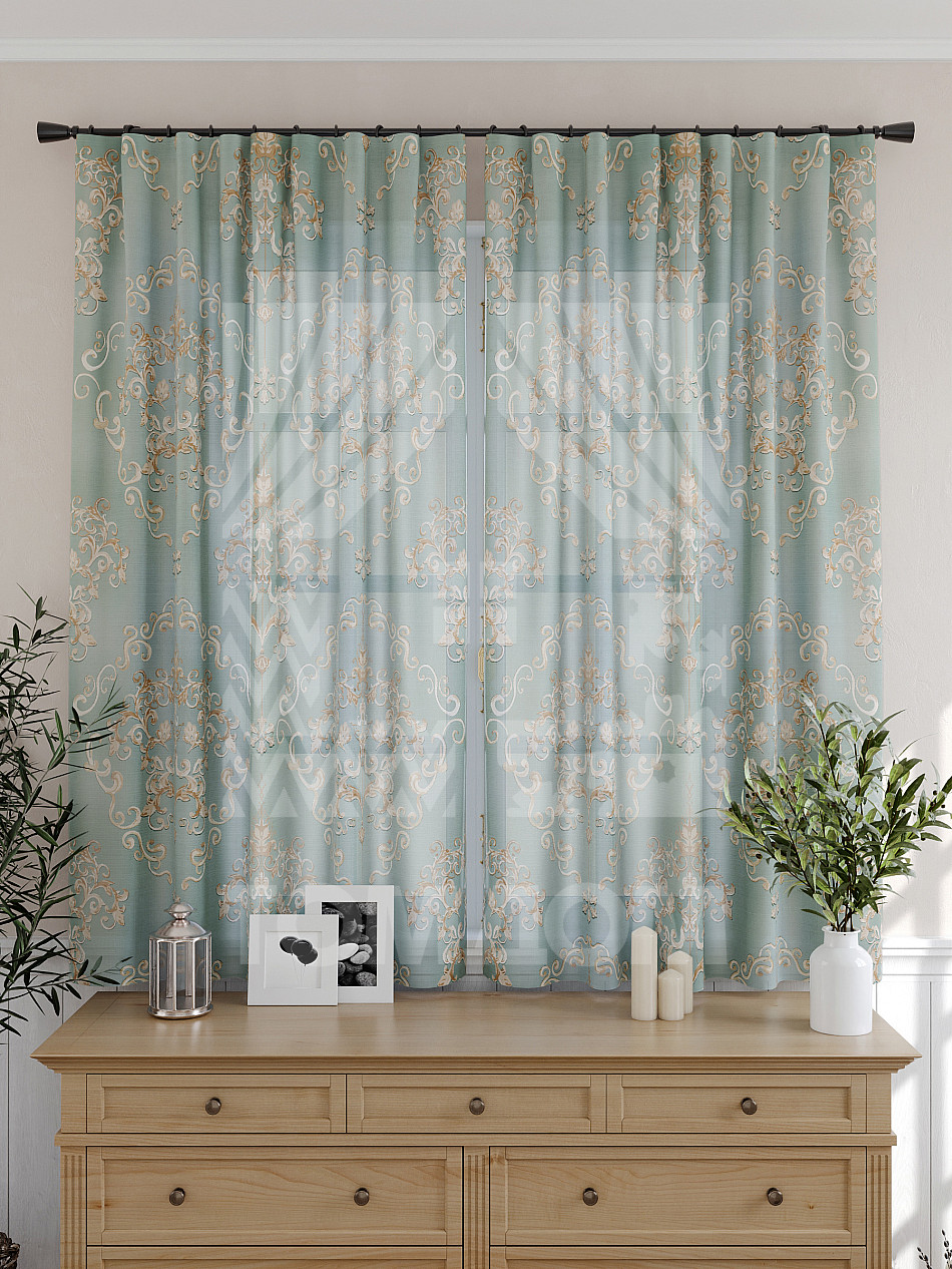 Тюль 2 шт. Подхват - доп.услуга. Легкая основа (вуаль) оформлена принтом. Вуаль с матовой полупрозрачной текстурой. Отличается особым шиком, идеально подходит для создания воздушных штор. Придает ощущение свежести, хорошо пропускает воздух. Ткань неприхотлива в уходе, хорошо стирается без разрушения волокон с течением времени за счет высокого кручения нитей.