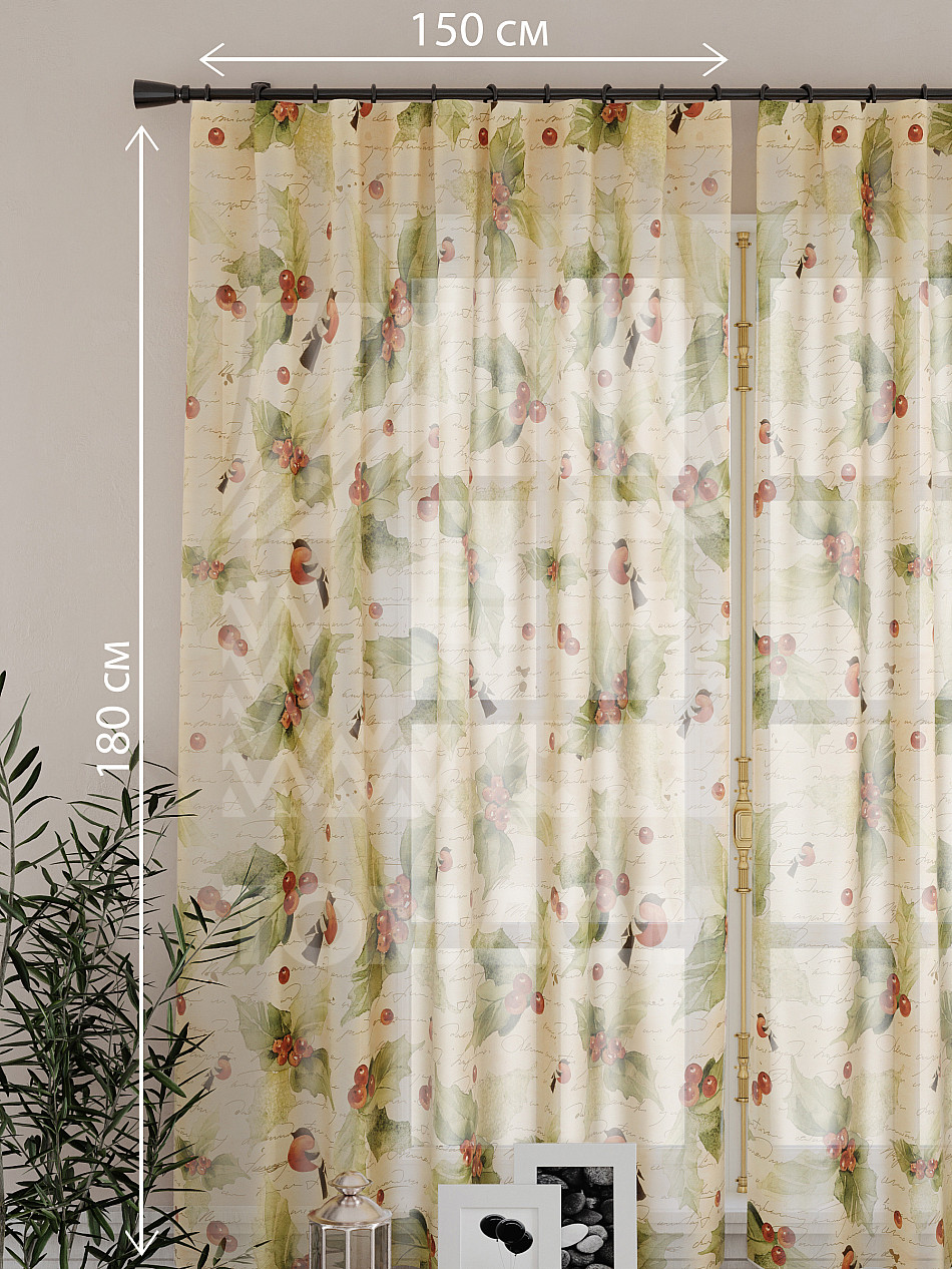Ширина одного тюля без сборки 150 см, высота 180 см.