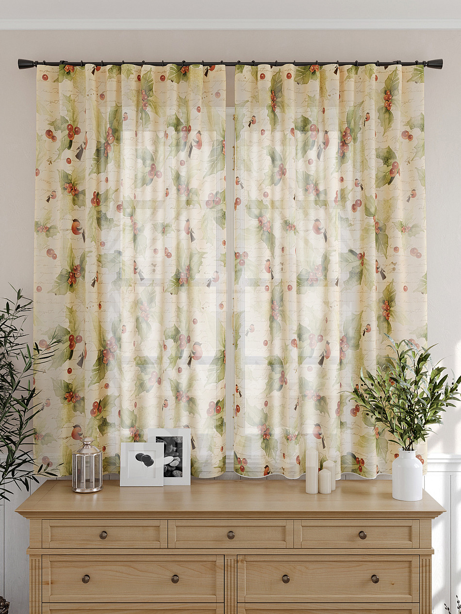 Тюль 2 шт. Подхват - доп.услуга. Легкая основа (вуаль) оформлена принтом. Вуаль с матовой полупрозрачной текстурой. Отличается особым шиком, идеально подходит для создания воздушных штор. Придает ощущение свежести, хорошо пропускает воздух. Ткань неприхотлива в уходе, хорошо стирается без разрушения волокон с течением времени за счет высокого кручения нитей.