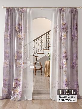 Тюль 2 шт. Легкая основа (вуаль) оформлена фотопечатью. Вуаль с матовой полупрозрачной текстурой. Отличается особым шиком, идеально подходит для создания воздушных штор. Придает ощущение свежести, хорошо пропускает воздух. Ткань неприхотлива в уходе, хорошо стирается без разрушения волокон с течением времени за счет высокого кручения нитей.