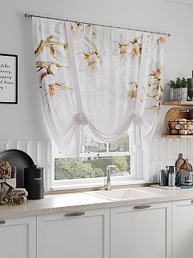 ВыбратьПортьера 1 шт. Портьера из легкой ткани (габардин). Легкая занавес оформлена фотопечатью, дополнена отделкой в виде декоративных завязок. Портьера имитирует римскую штору. Подъем и опускание осуществляется за счет декоративных лент. Не смотря на то что, материал легкий, он имеет высокую плотность, мало загрязнятся и не требует особого ухода даже после стирки, что важно для кухонных занавесок. Придает ощущение свежести, хорошо пропускает воздух. Ткань неприхотлива в уходе, хорошо стирается без разрушения волокон с течением времени за счет высокого кручения нитей.