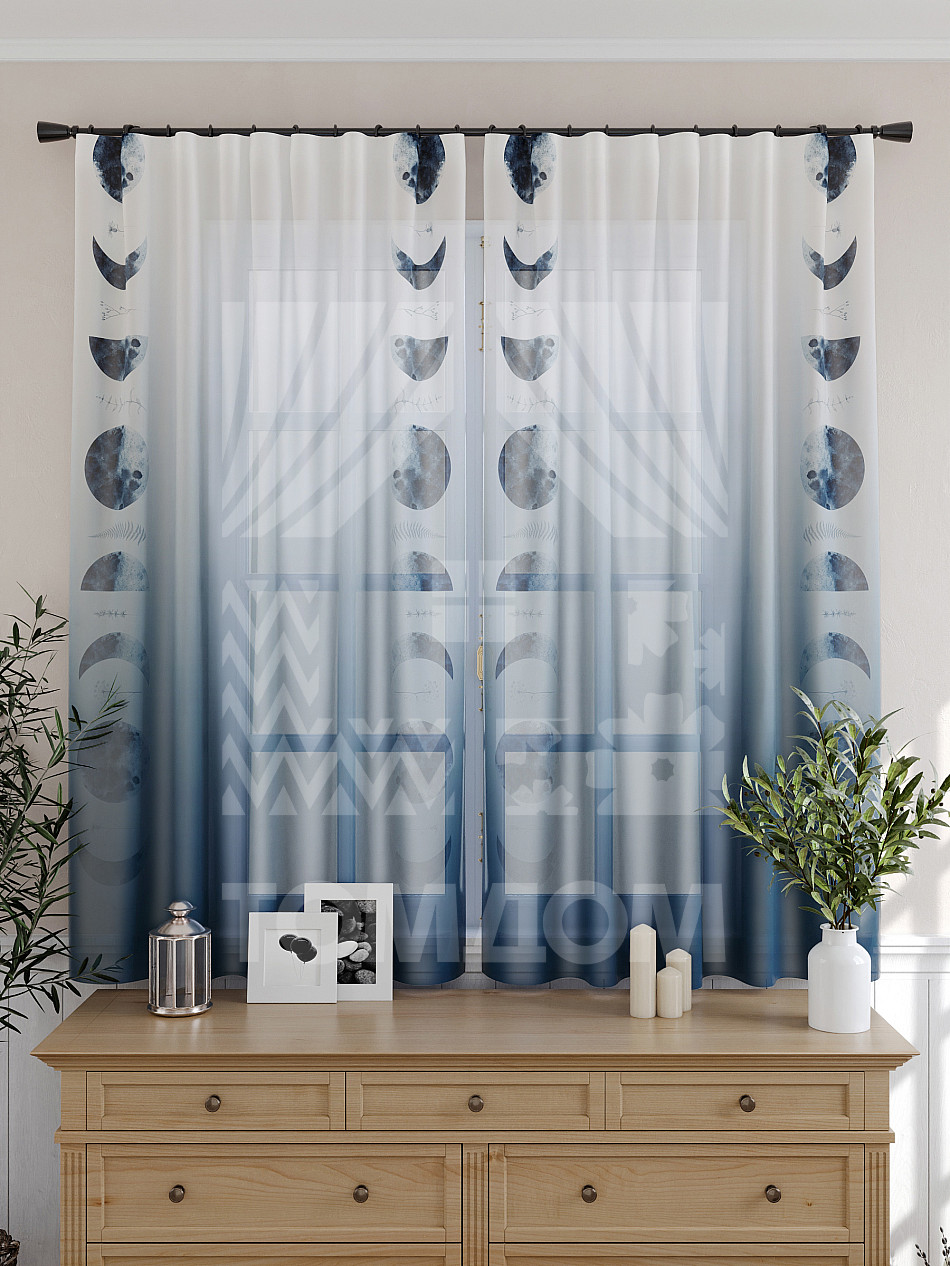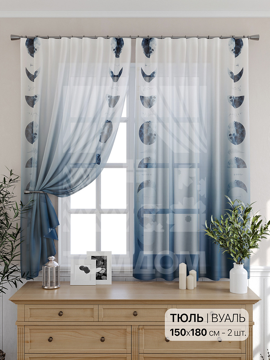 Тюль 2 шт. Подхват - доп.услуга. Легкая основа (вуаль) оформлена принтом. Вуаль с матовой полупрозрачной текстурой. Отличается особым шиком, идеально подходит для создания воздушных штор. Придает ощущение свежести, хорошо пропускает воздух. Ткань неприхотлива в уходе, хорошо стирается без разрушения волокон с течением времени за счет высокого кручения нитей.