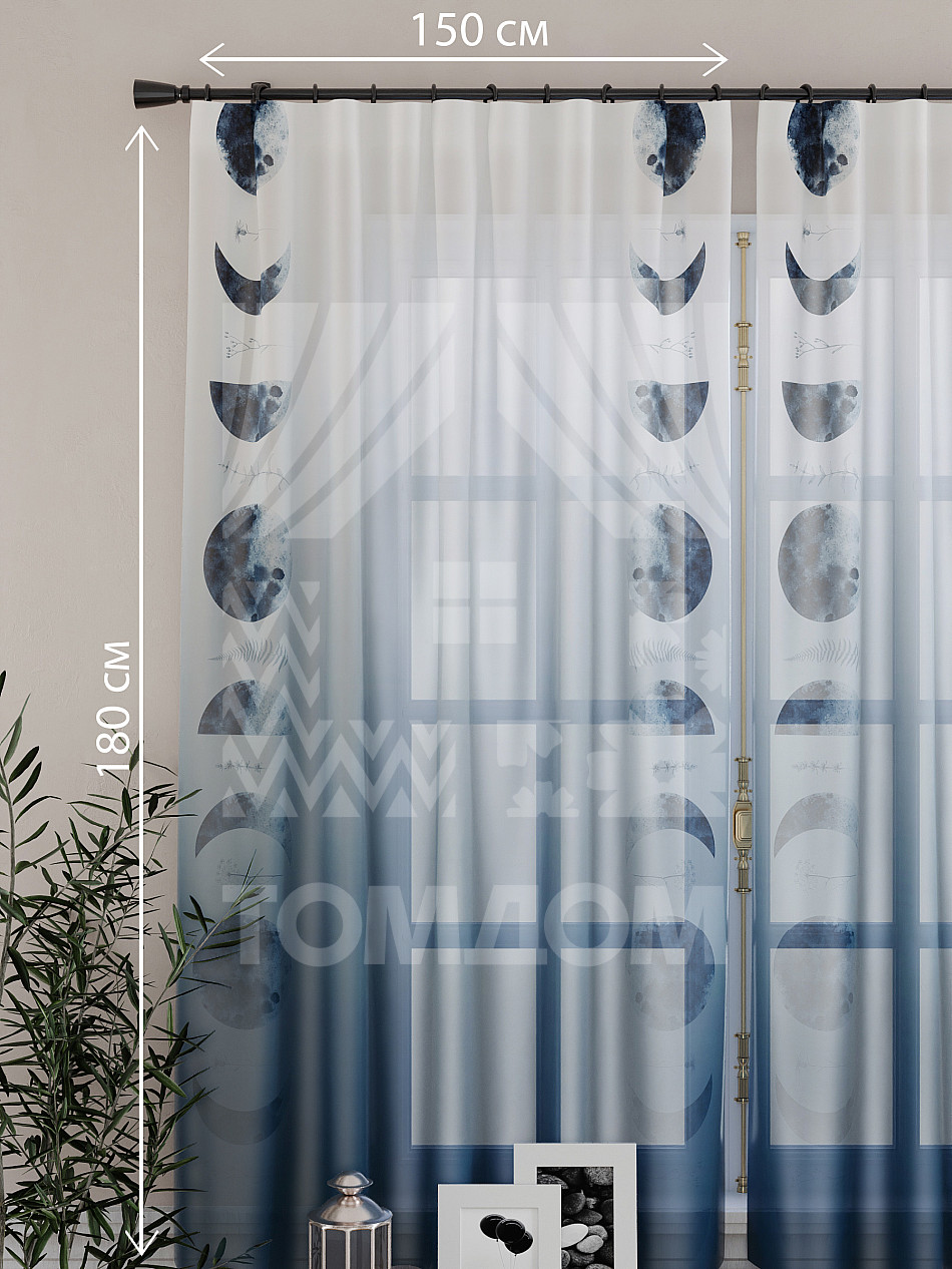 Ширина одного тюля без сборки 150 см, высота 180 см.