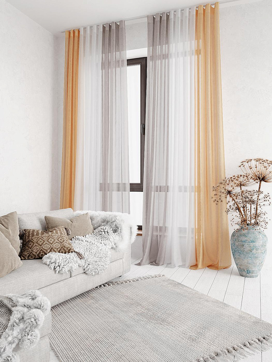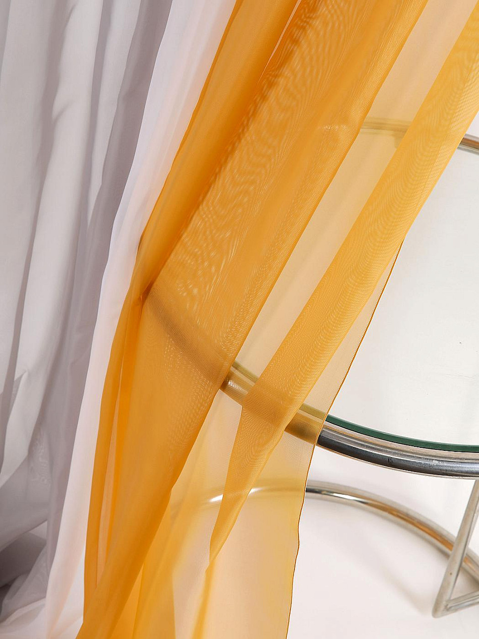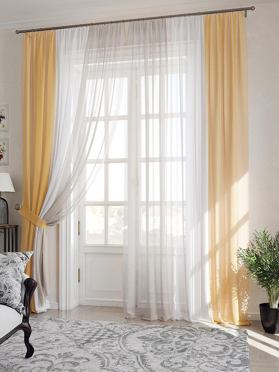 Тюль 2 шт.: Тюлевый комплект из вуали с легкой, элегантной драпировкой. Тюль имеет два стачных шва по вертикали, который после драпировки уходит в складку и становится невидимым. Вуаль с матовой полупрозрачной текстурой. Отличается особым шиком, идеально подходит для создания воздушных штор. Придает ощущение свежести, хорошо пропускает воздух. Ткань неприхотлива в уходе, хорошо стирается без разрушения волокон с течением времени за счет высокого кручения нитей.
