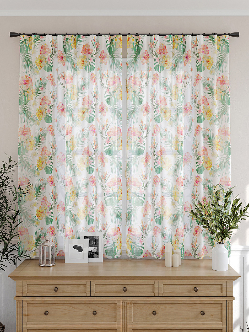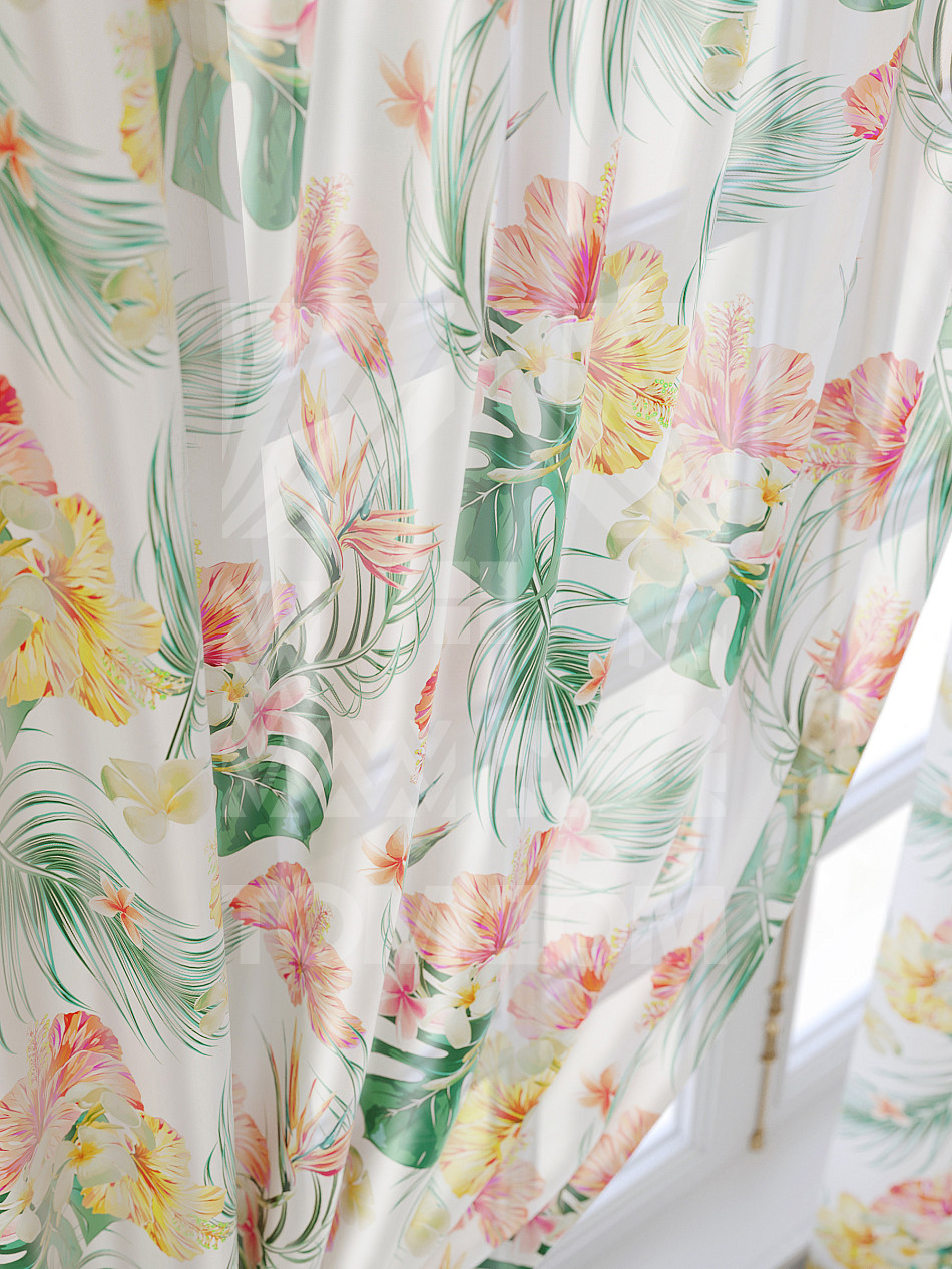 Тюль 2 шт. Подхват - доп.услуга. Легкая основа (вуаль) оформлена принтом. Вуаль с матовой полупрозрачной текстурой. Отличается особым шиком, идеально подходит для создания воздушных штор. Придает ощущение свежести, хорошо пропускает воздух. Ткань неприхотлива в уходе, хорошо стирается без разрушения волокон с течением времени за счет высокого кручения нитей.