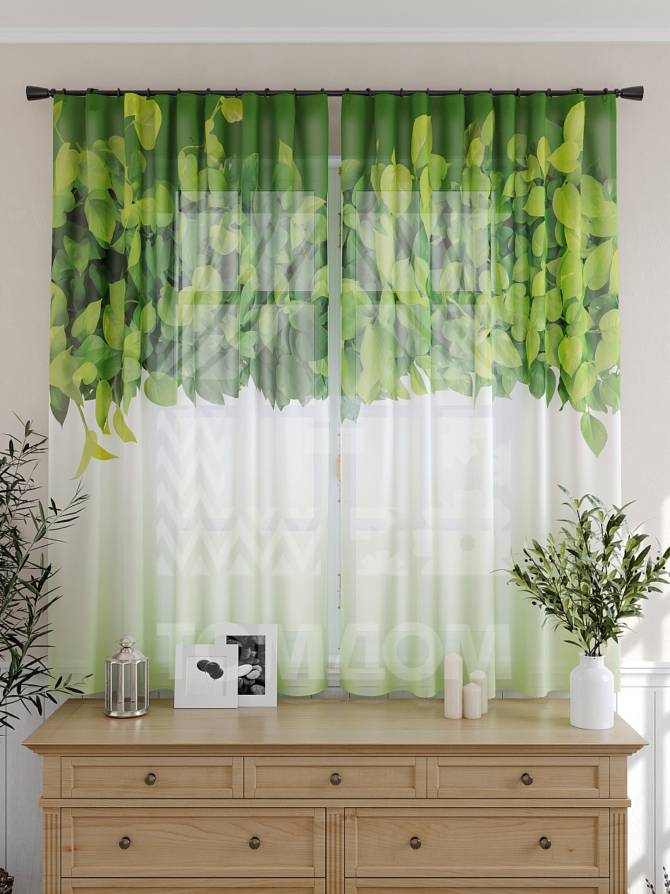 Тюль 2 шт. Подхват - доп.услуга. Легкая основа (вуаль) оформлена принтом. Вуаль с матовой полупрозрачной текстурой. Отличается особым шиком, идеально подходит для создания воздушных штор. Придает ощущение свежести, хорошо пропускает воздух. Ткань неприхотлива в уходе, хорошо стирается без разрушения волокон с течением времени за счет высокого кручения нитей.