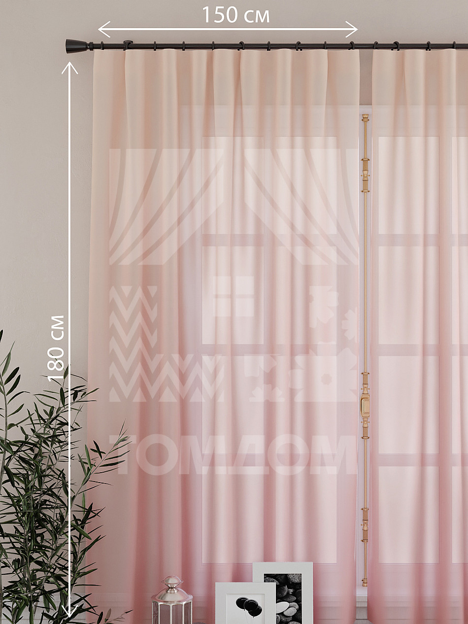 Ширина одного тюля без сборки 150 см, высота 180 см.