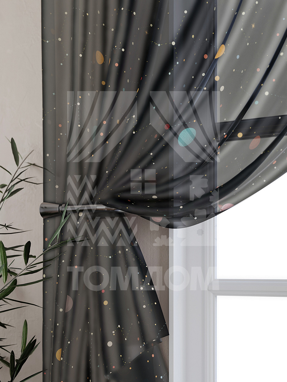 Тюль 2 шт. Подхват - доп.услуга. Легкая основа (вуаль) оформлена принтом. Вуаль с матовой полупрозрачной текстурой. Отличается особым шиком, идеально подходит для создания воздушных штор. Придает ощущение свежести, хорошо пропускает воздух. Ткань неприхотлива в уходе, хорошо стирается без разрушения волокон с течением времени за счет высокого кручения нитей.