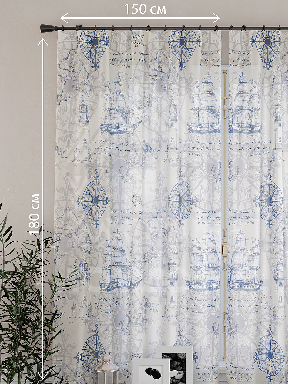Ширина одного тюля без сборки 150 см, высота 180 см.