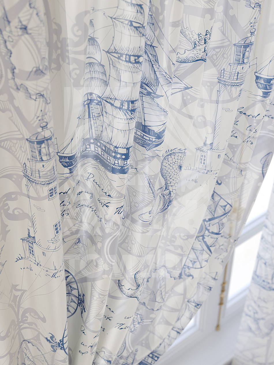 Комбинированные Морские Современный Узоры Фото принт Надписи/БуквыАксессуары для оформления штор: