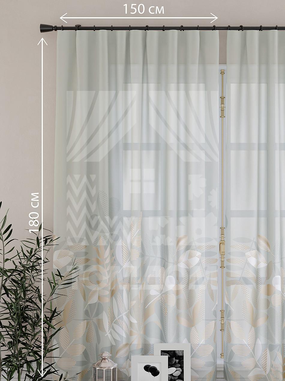 Ширина одного тюля без сборки 150 см, высота 180 см.