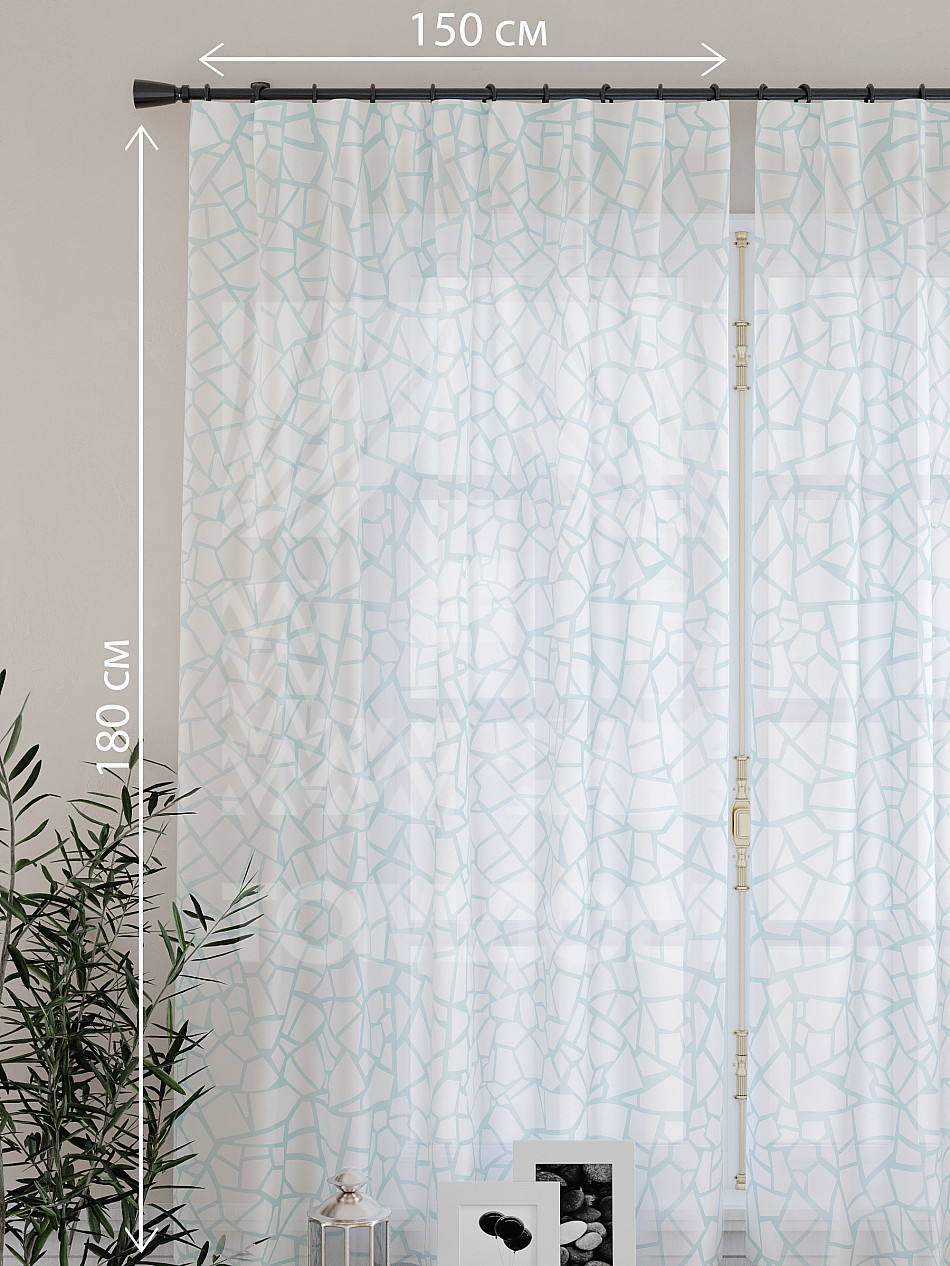 Ширина одного тюля без сборки 150 см, высота 180 см.
