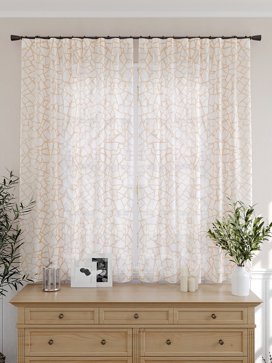 Тюль 2 шт. Подхват - доп.услуга. Легкая основа (вуаль) оформлена принтом. Вуаль с матовой полупрозрачной текстурой. Отличается особым шиком, идеально подходит для создания воздушных штор. Придает ощущение свежести, хорошо пропускает воздух. Ткань неприхотлива в уходе, хорошо стирается без разрушения волокон с течением времени за счет высокого кручения нитей.